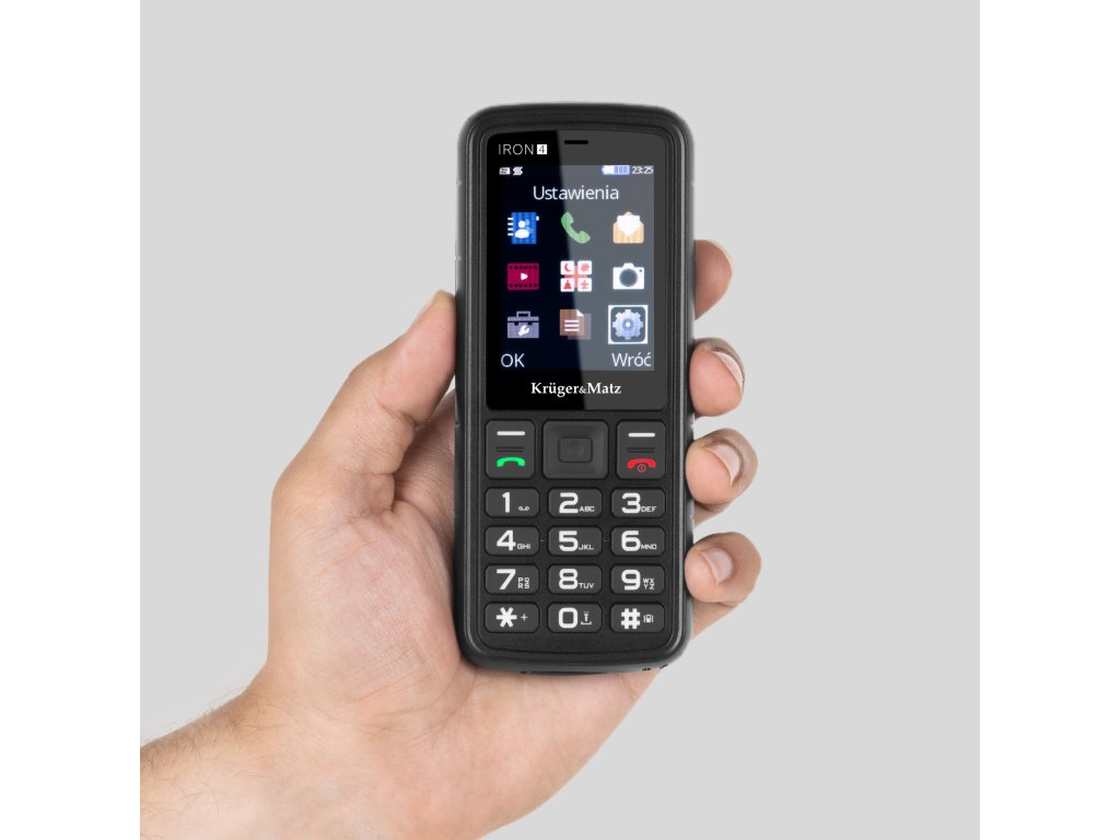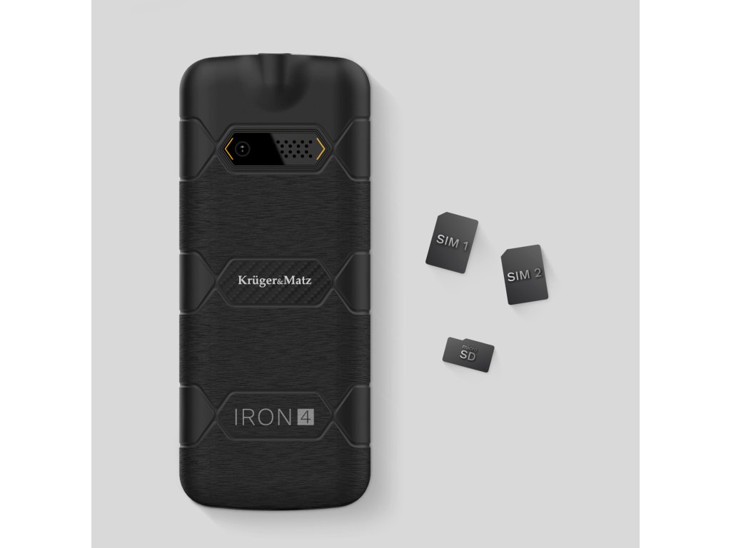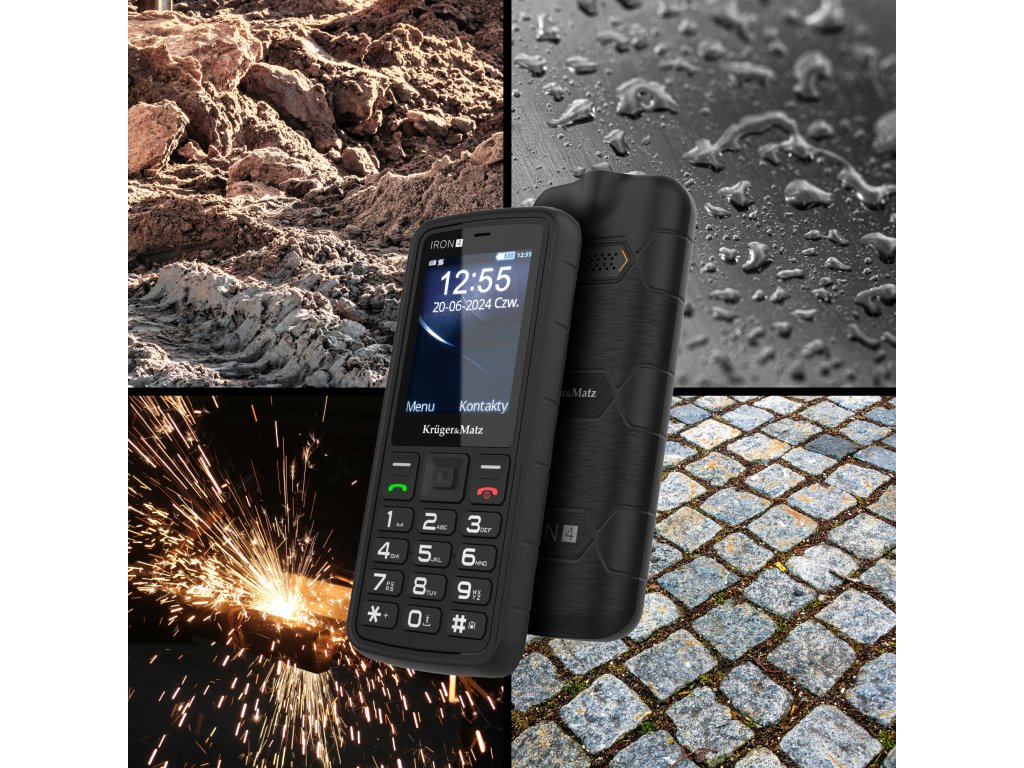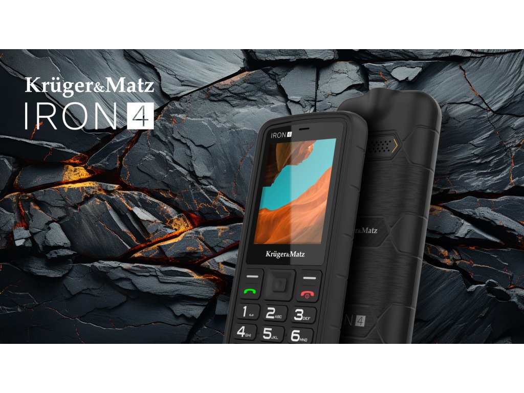 Idealan u bilo kojim uvjetima Kruger&Matz IRON 4 namijenjen je ljudima koji daju prednost izdržljivosti uređaja u svakodnevnoj uporabi nad naprednim funkcijama i aplikacijama. Model se odlikuje pojačanim kućištem koje osigurava otpornost na udarce, prašinu i prskanje. Iz tog razloga IRON 4 bit će idealan izbor za građevinske radnike, ekstremne sportaše i ljubitelje vanjskih pustolovina.