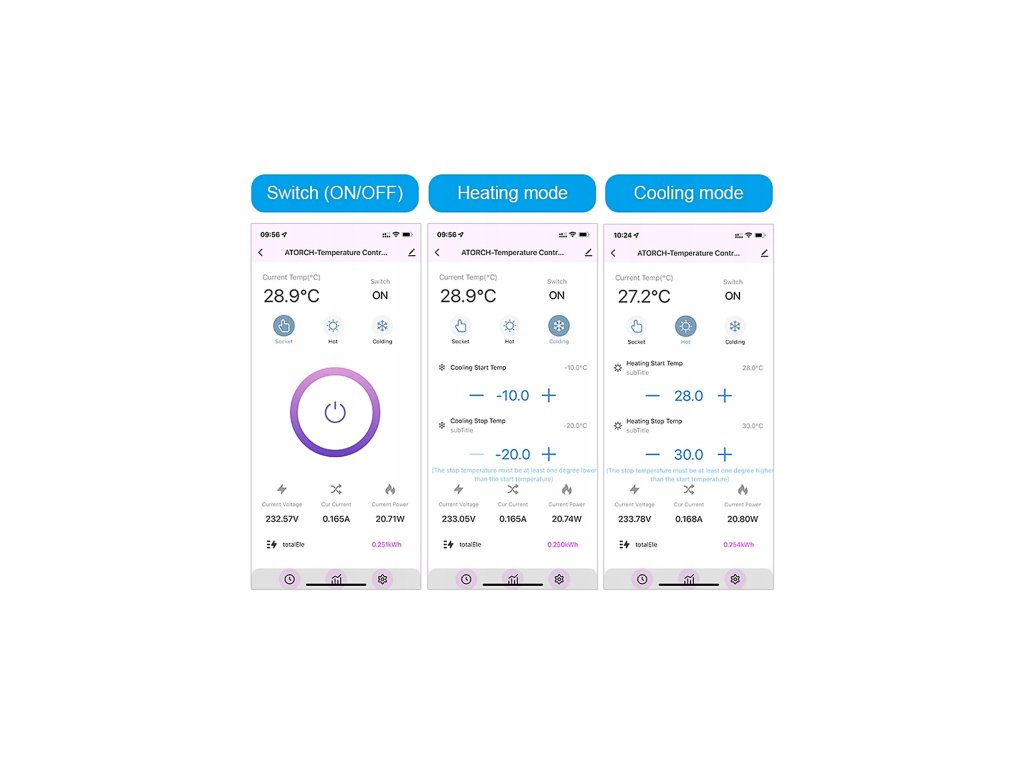 Termostat s utičnicom 230V, mjerač energije, WiFi Tuya