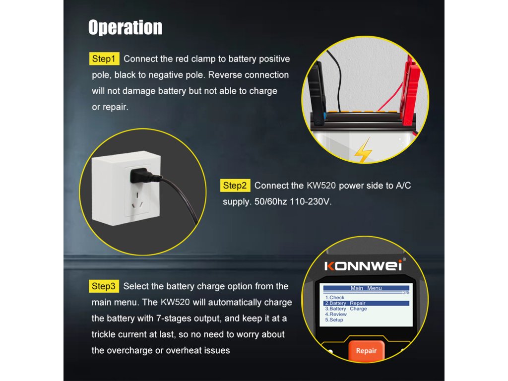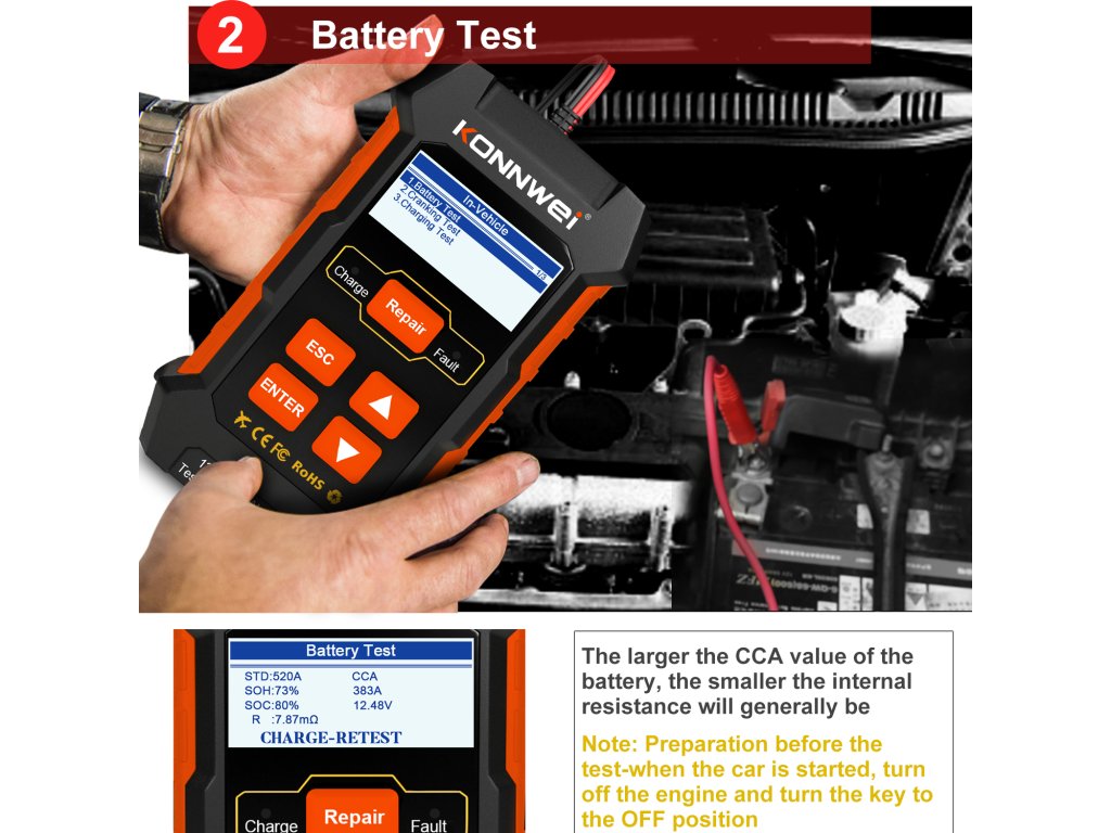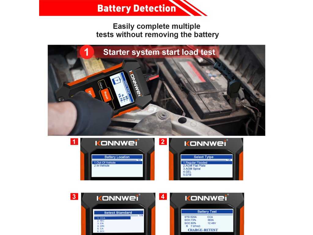 Tester automobilske baterije Konnwei 520