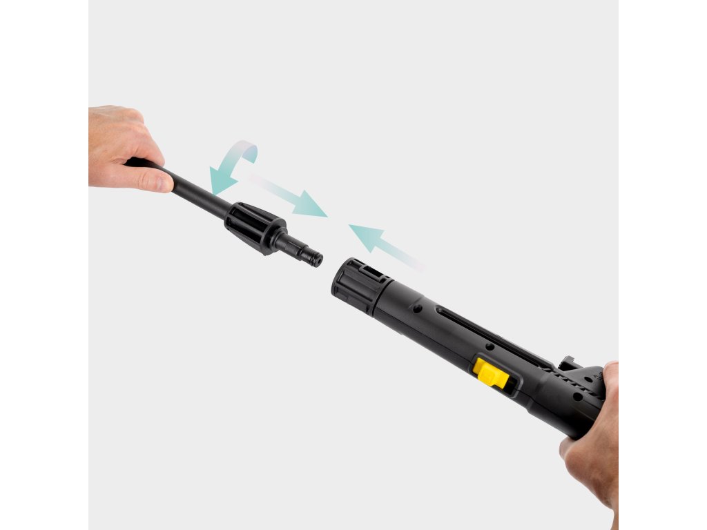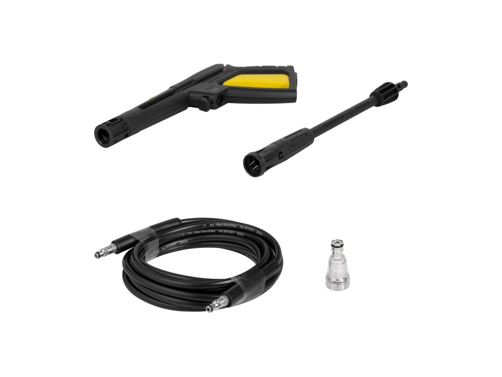 Set uključuje: pištolj, nastavak s podesivom mlaznicom, crijevo, ulazni adapter s filtrom
