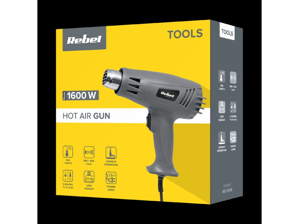 Toplovodni pištolj Rebel je neophodan alat za profesionalce i kućne majstore. Idealno odgovara za uklanjanje boje, skupljanje žica, odmrzavanje zamrznutih cijevi, kao i oblikovanje plastike. Zahvaljujući visokoj snazi od 1600 W i mogućnosti izbora temperature, savršeno se prilagođava raznim aktivnostima.