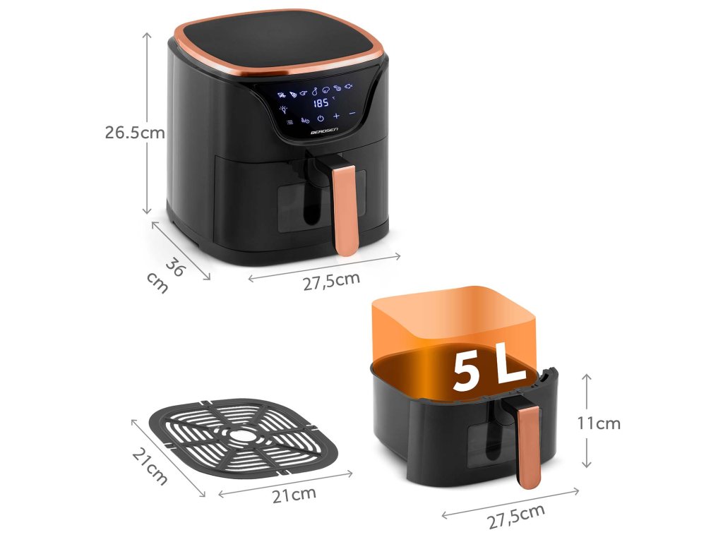 - ispunjava sve sigurnosne norme, ima CE, GS, LFGB, ROHS certifikate koji potvrđuju da je friteza siguran i pouzdan električni uređaj namijenjen za kontakt s hranom i bez štetnih tvari,