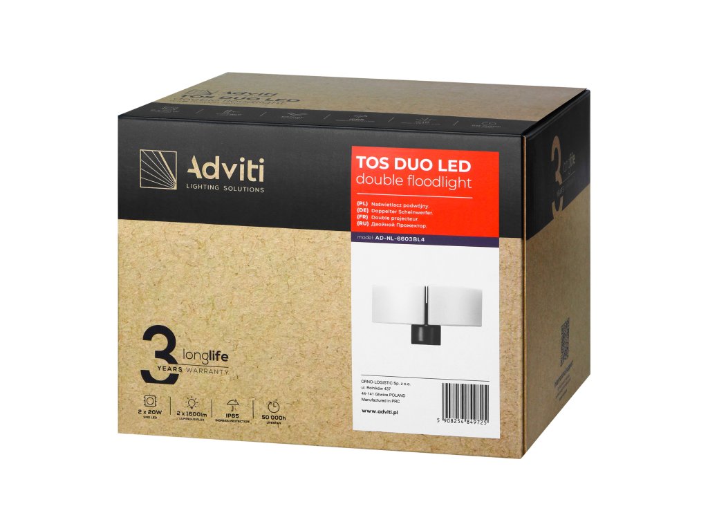 TOS DUO LED 2x20W dvostruko vrtno reflektorsko svjetlo, 2x1600lm, IP65, 4000K, PC, crna