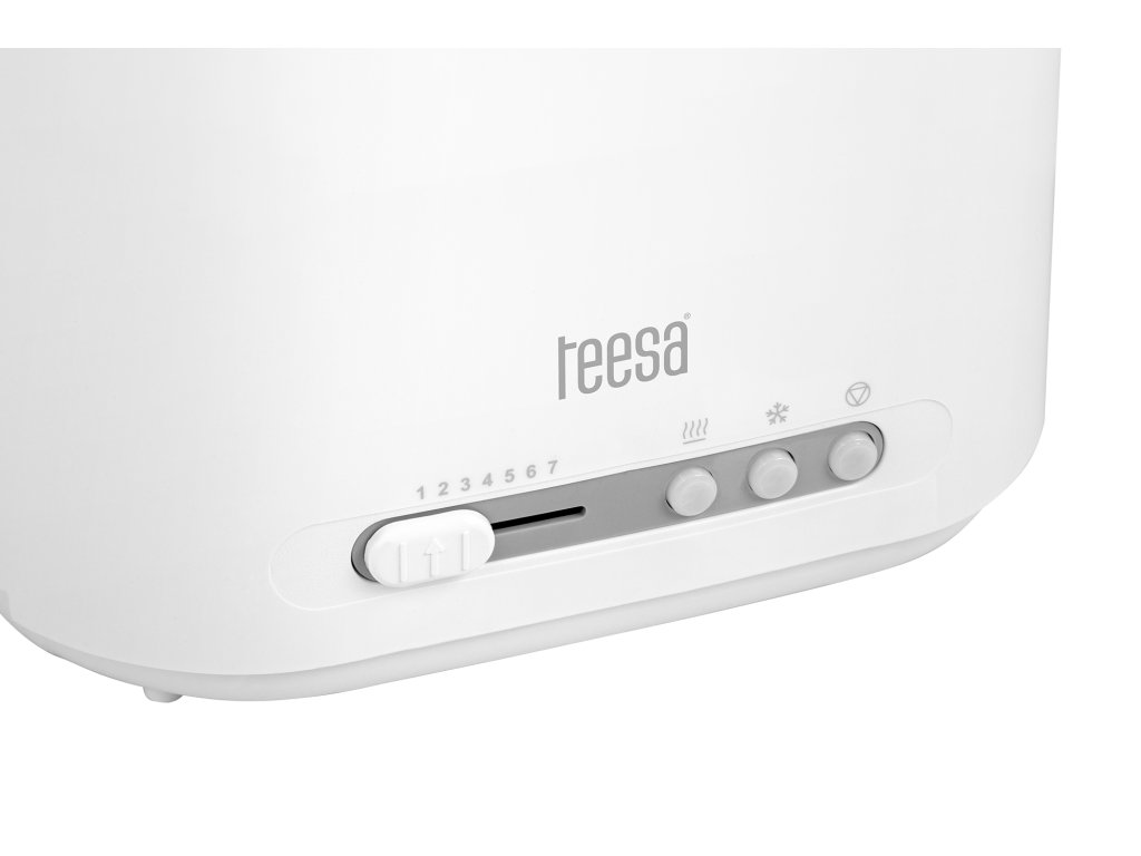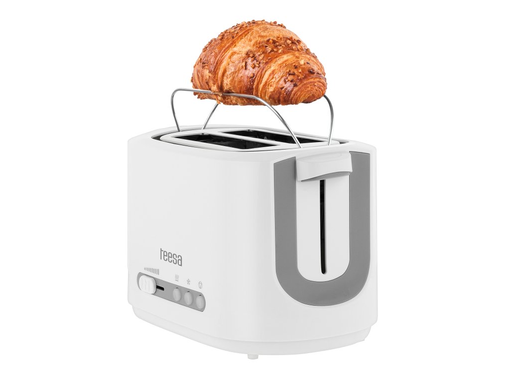 Toster Teesa ima 7-stupanjsko podešavanje razine pečenja i tipku Stop, zahvaljujući čemu svaki član domaćinstva može lako pripremiti tost prema vlastitim preferencijama. Osim toga, funkcija automatskog centriranja osigurava da su tostovi uvijek ravnomjerno pečeni. Oduševit će vas i dodatne funkcije ne samo za odmrzavanje kruha, već i za zagrijavanje tosta. I to nije sve! Imate li želju za hrskavom bagetom Možete koristiti integriranu rešetku za pečenje.