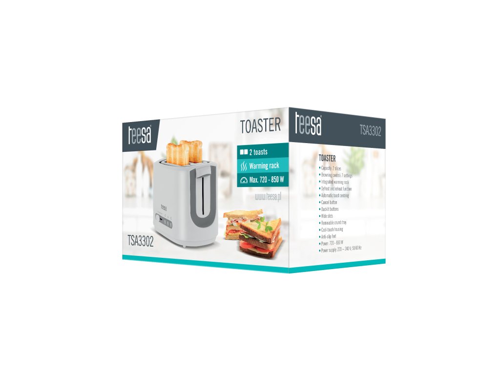 Zaboravite na svakodnevnu kupnju u pekarnici! Zahvaljujući tosteru Teesa, kruh će uvijek biti hrskav kao da ste ga upravo izvadili iz pećnice. Zahvaljujući snazi od 850 W možete istovremeno pripremiti 2 tost, što znači da se doručak za cijelu obitelj može pripremiti izuzetno brzo.