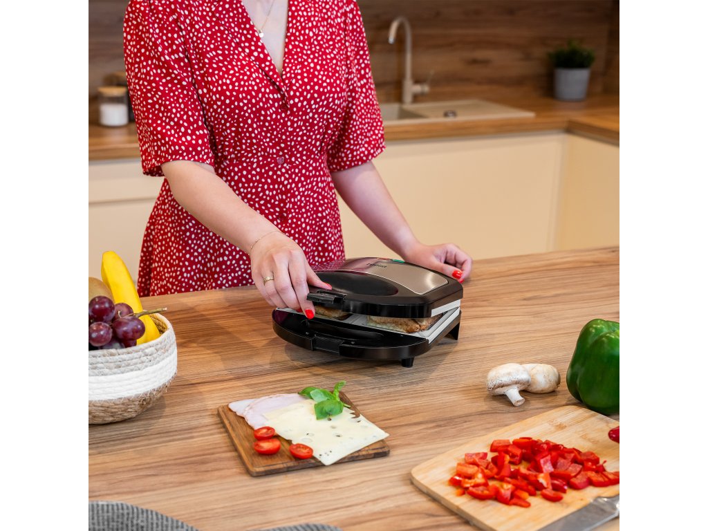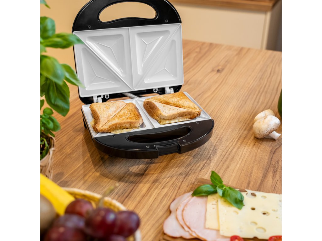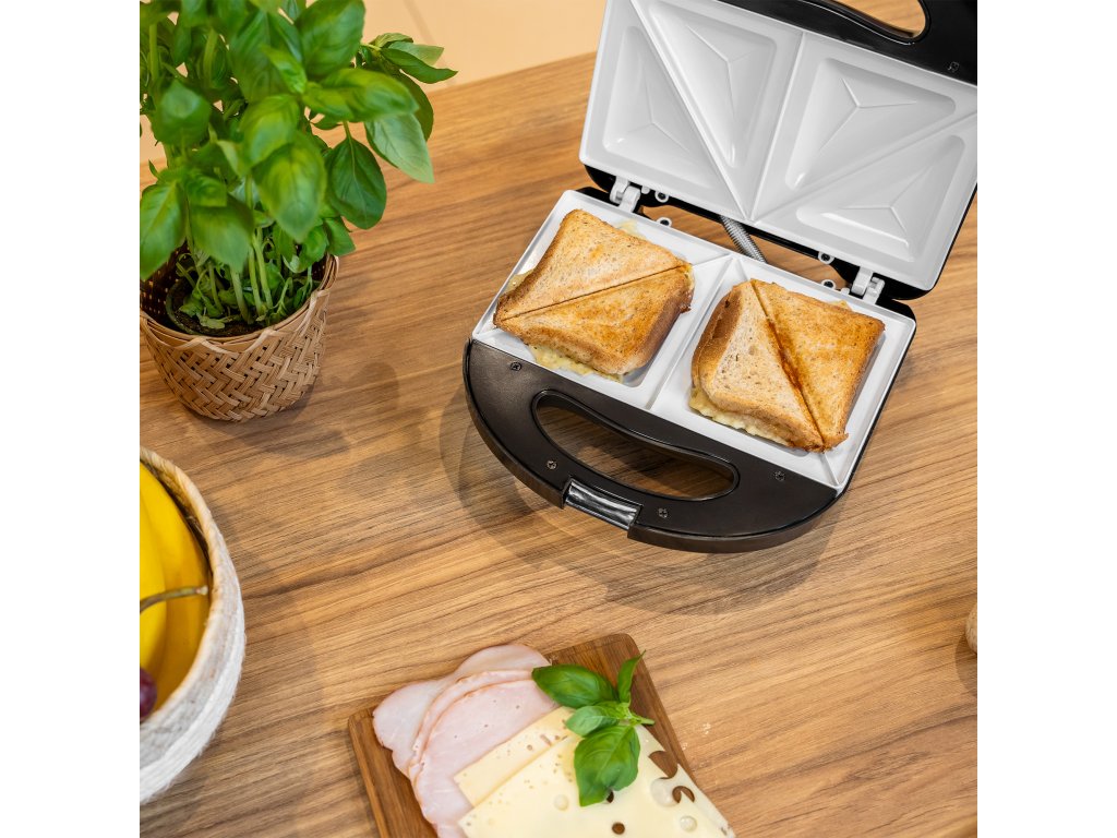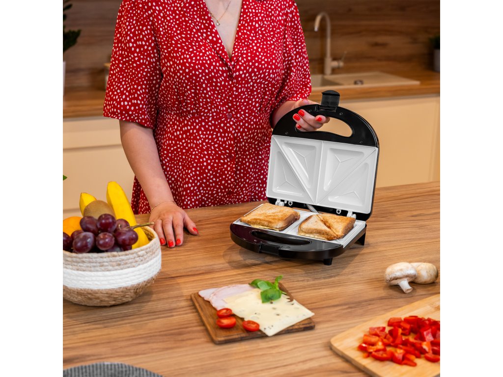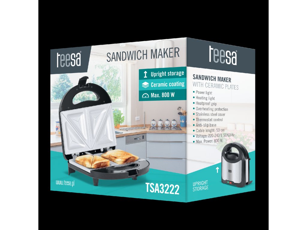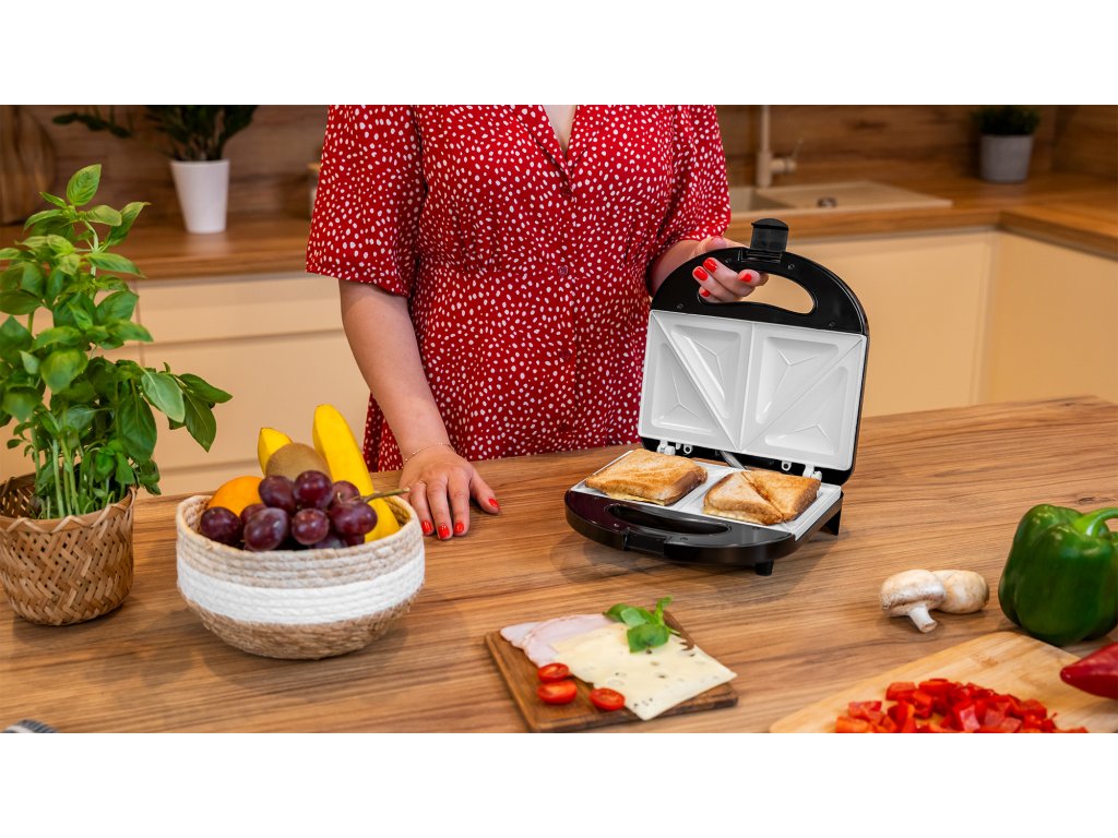 Dosadili ste se klasičnih sendviča Vrijeme je za promjenu! Sendvičera Teesa TSA3222 savršen je alat za jednostavnu pripremu ukusnog obroka. Zahvaljujući visokoj snazi od 800 W uređaj se zagrijava u trenu, tako da možete vrlo brzo pripremiti doručak za cijelu obitelj. Osim toga, toster je opremljen neljepljivim pločama s keramičkom površinom, tako da sigurno nećete gubiti vrijeme na dugotrajno čišćenje.