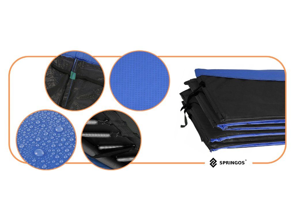 - Pokrov ima mogućnost pričvršćivanja za okvir trampolina pomoću vezica