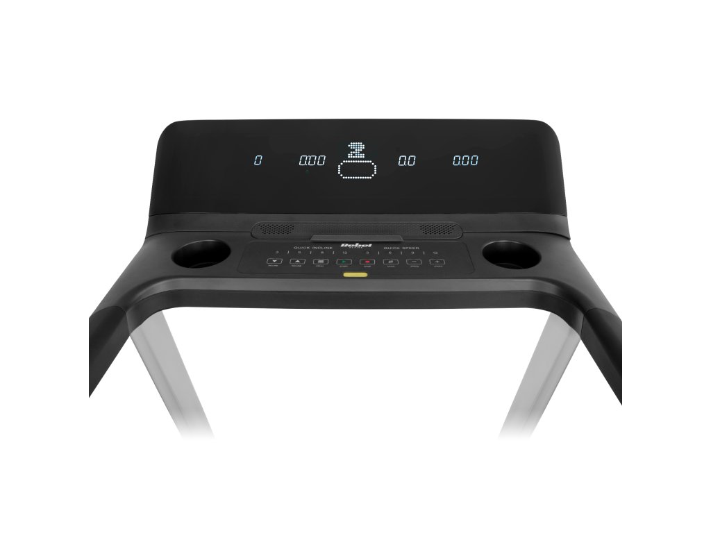 Kućna traka za trčanje Rebel Active također ima poseban držač za telefon ili tablet koji omogućuje korištenje aplikacija za trening, gledanje filmova ili slušanje glazbe tijekom vježbanja. Udobnost tijekom treninga pružaju i praktične police za posudu s vodom ili izotoničnim pićem. Zahvaljujući njima, lako ćete održavati pravilnu hidrataciju tijekom treninga bez potrebe za prestankom trčanja.