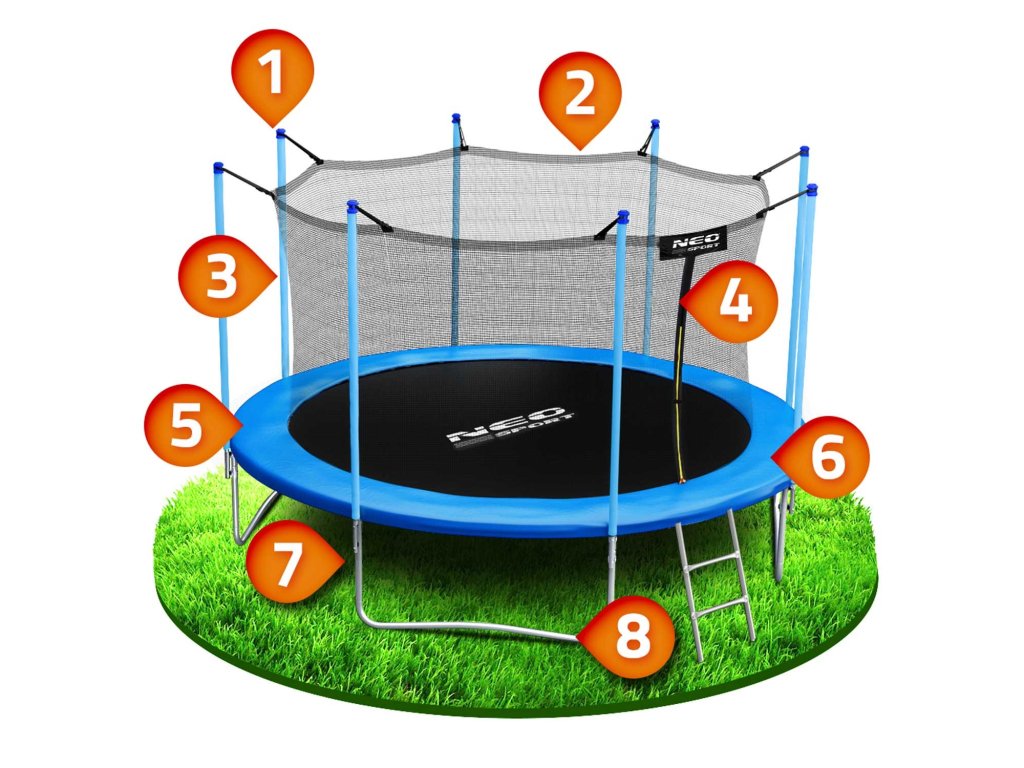 - Set uključuje: vrtni trampolin, sigurnosnu mrežu, metalne ljestve, upute za upotrebu