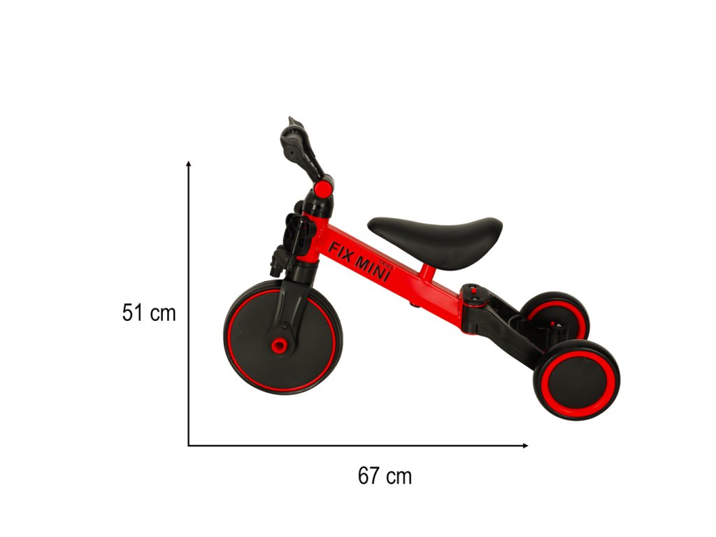 Tricikl Fix Mini trkaći tricikl 3u1 s pedalama crvena