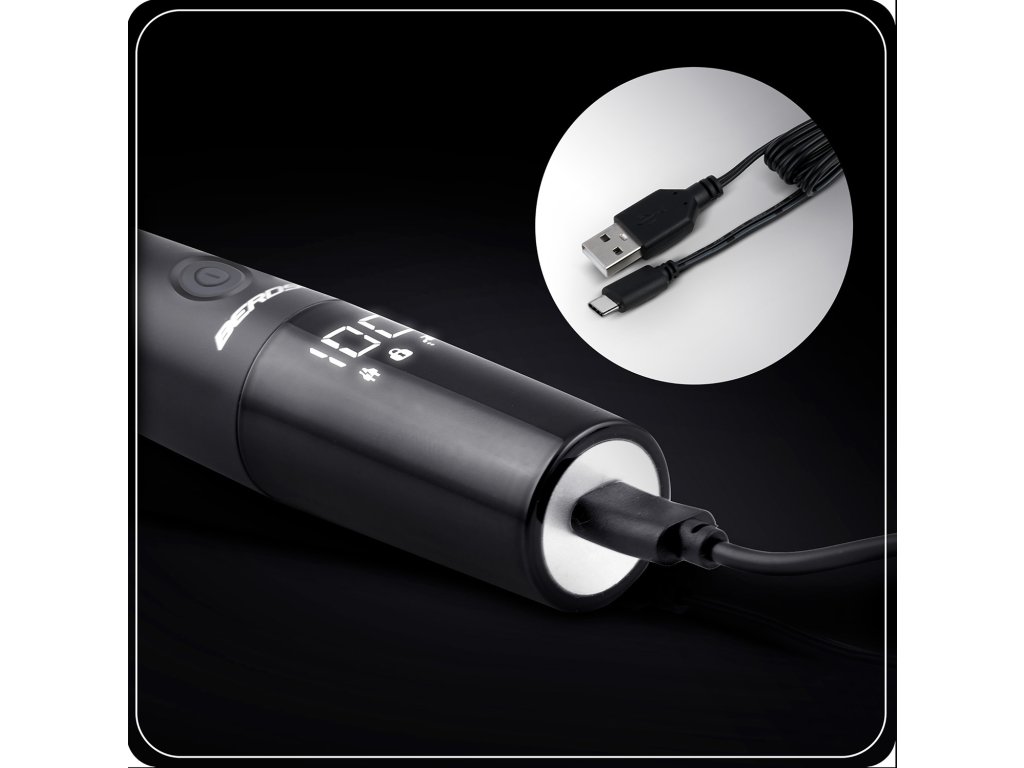 - LCD zaslon – prikazuje stanje baterije i brzinu okretaja za potpunu kontrolu.