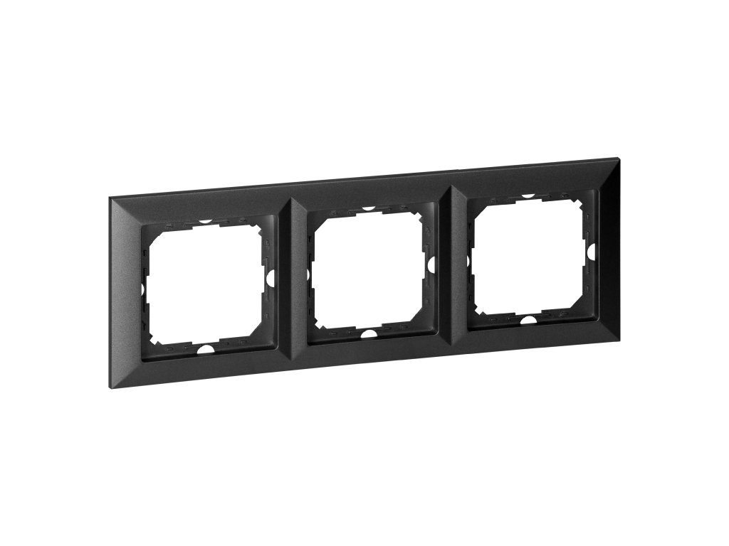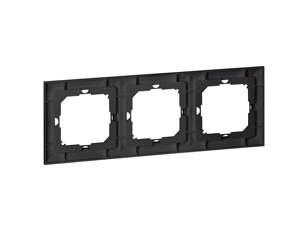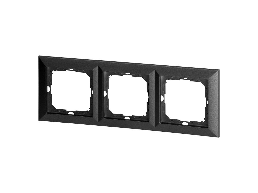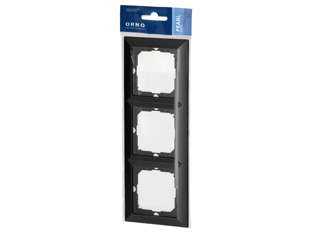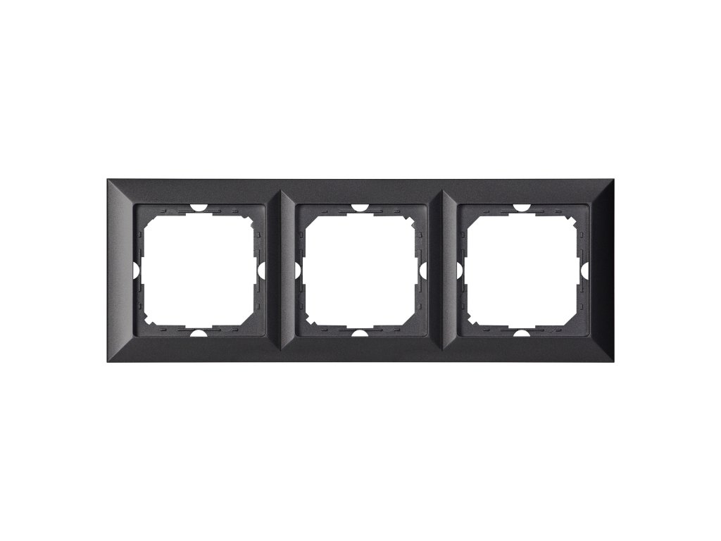 Modularna serija sa simetričnim sustavom okvirnih ploča (za 1-, 2-, 3-, 4-, 5-modula) omogućuje montažu proizvoda u horizontalnom i vertikalnom položaju. Moderan sustav brzog priključivanja (vodiči se priključuju izravno guranjem u kućište) omogućuje sigurnu i pouzdanu instalaciju i uklanjanje vodiča. Utičnice su opremljene tradicionalnim vijčanim spojevima. Unutarnja konstrukcija stezaljki jamči pouzdanu vezu vodiča od 0,75 mm? do 2,5 mm?. Jak i čvrst montažni nosač i visokokvalitetni samonamotavajući elementi omogućuju stabilnu i sigurnu instalaciju u kutiji. Posebni opružni elementi olakšavaju umetanje okvira u kućište.Trostruki okvir za seriju Pearl. Treba ga koristiti u unutrašnjosti (IP20).