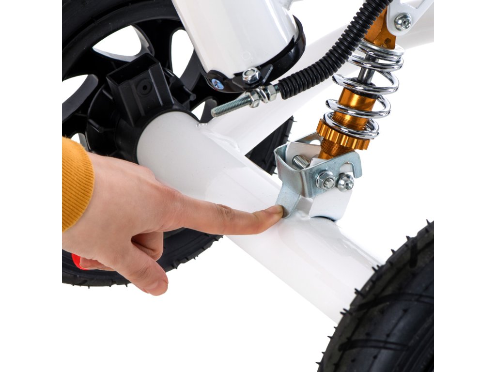 Stražnji kotači bicikla mogu se preklopiti pritiskom na gumb. Može se sklopiti.