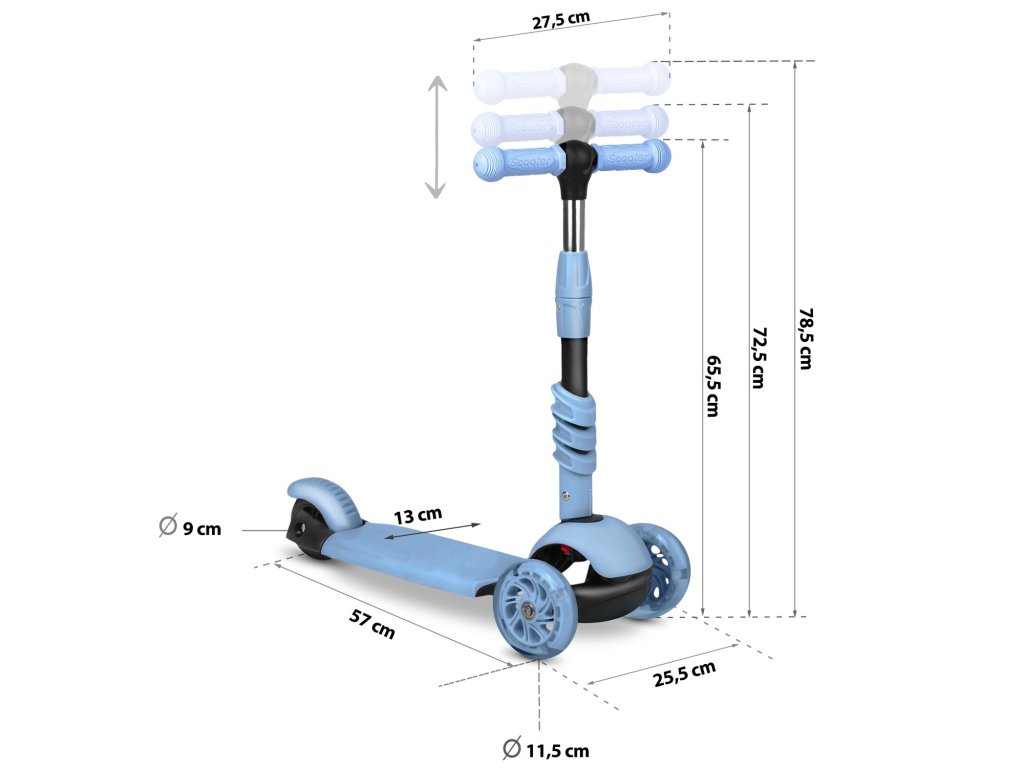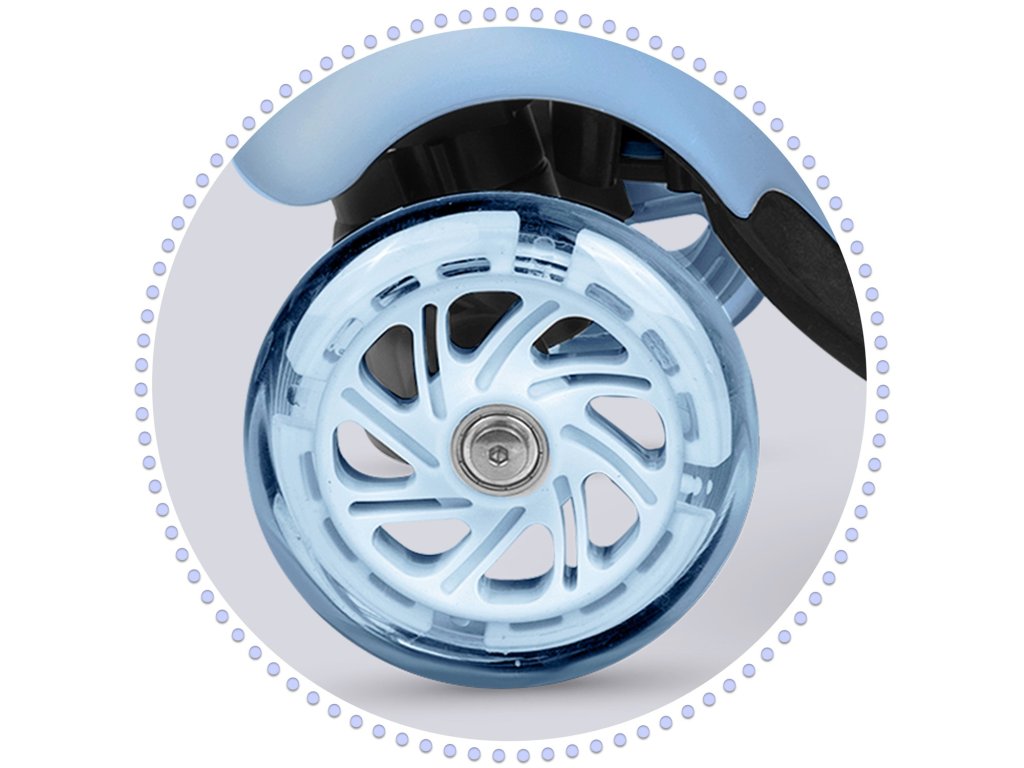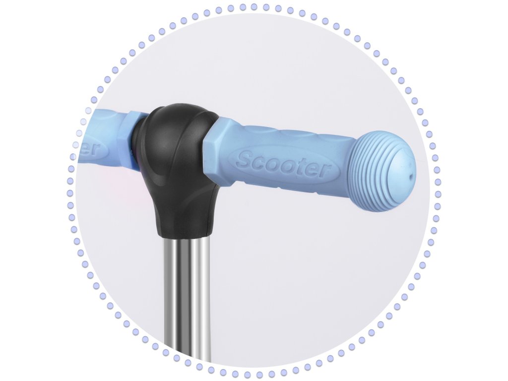 Upravljanje se odvija samo balansiranjem, bez okretanja upravljača. Dovoljno je lagano se nagnuti u željenom smjeru – i to je to! Dijete brzo savladava ovu tehniku vožnje i istovremeno vježba osjećaj za ravnotežu. Romobil pri skretanju ostaje stabilan u vertikalnom položaju zahvaljujući tri kotačića.