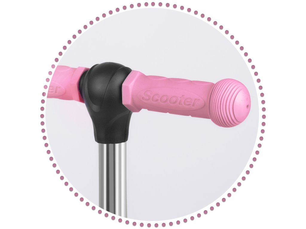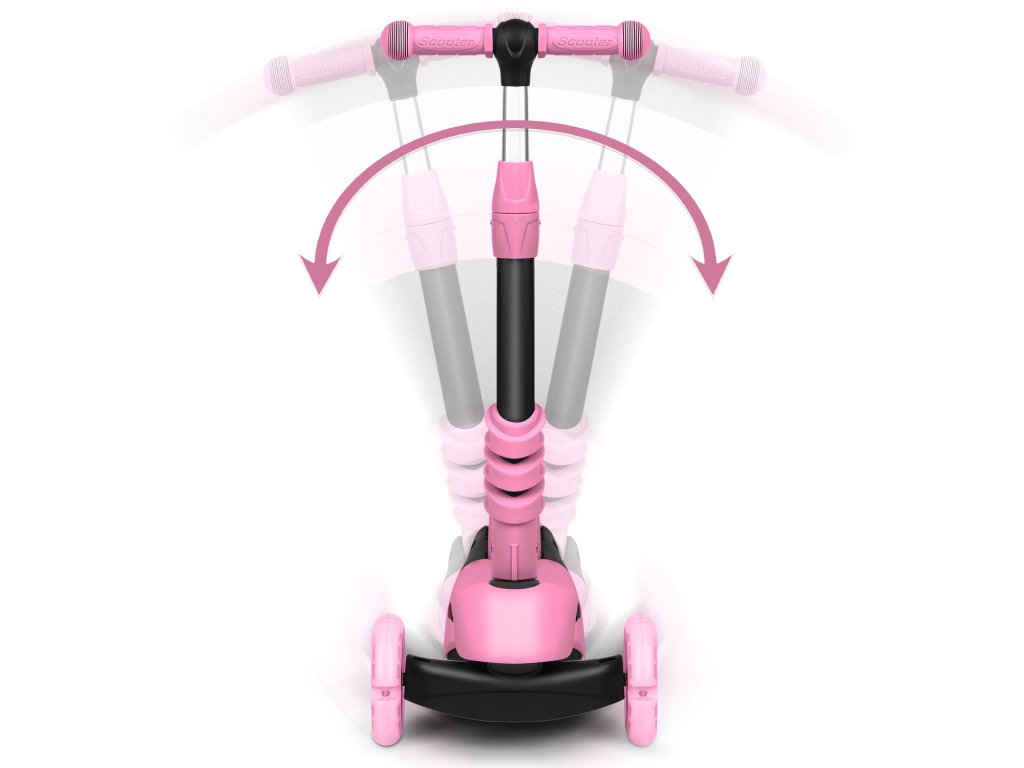 Upravljanje se odvija samo balansiranjem, bez okretanja upravljača. Dovoljno je lagano se nagnuti u željenom smjeru – i to je to! Dijete brzo savladava ovu tehniku vožnje i istovremeno vježba osjećaj za ravnotežu. Trokotačna romobil pri okretanju ostaje stabilna u vertikalnom položaju zahvaljujući tri kotača.