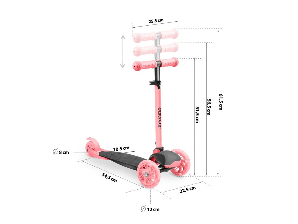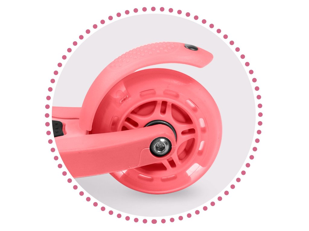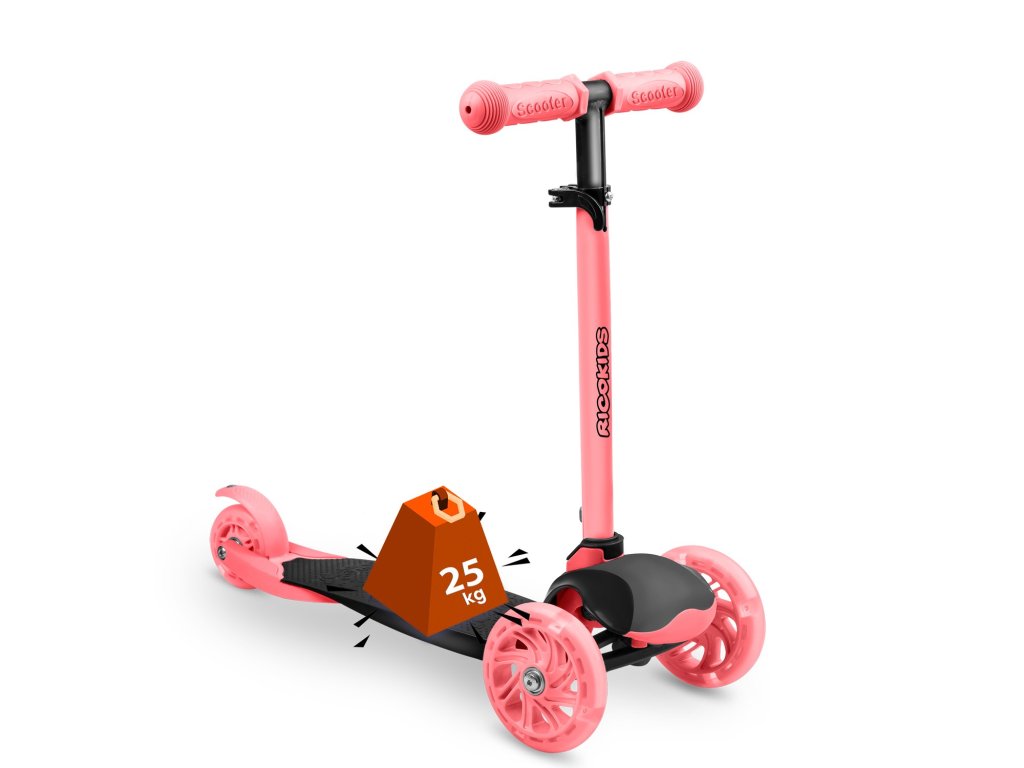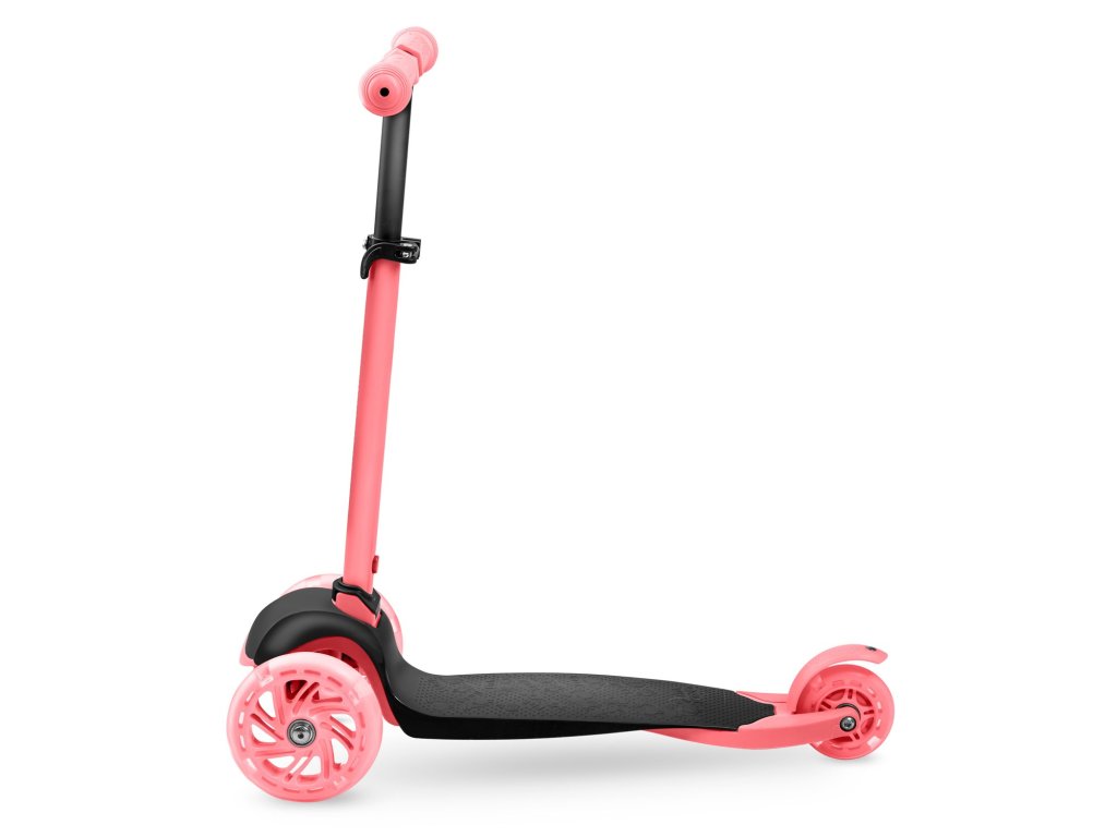 Ovaj romobil vam omogućava da ga upravljate balansiranjem tijela bez okretanja upravljača. Samo se nagnite u željenom smjeru – i to je to. Dijete može brzo usvojiti ovu tehniku vožnje, dok istovremeno vježba osjećaj za ravnotežu. To je također sigurnija oprema za manju djecu – sam romobil je stabilan u vertikalnom položaju zahvaljujući tri kotača.