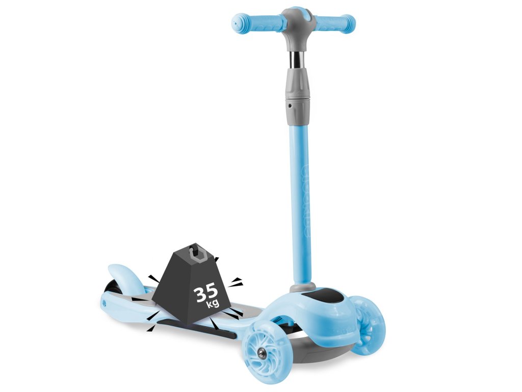 Ovaj romobil omogućuje upravljanje balansiranjem tijela bez okretanja upravljača. Dovoljno je nagnuti se željenom smjeru - i to je to. Vaše dijete će se brzo naviknuti na ovu tehniku vožnje te istovremeno vježbati osjećaj za ravnotežu. To je također sigurniji uređaj za manju djecu - sam romobil ostaje stabilan u uspravnom položaju zahvaljujući tri kotača.