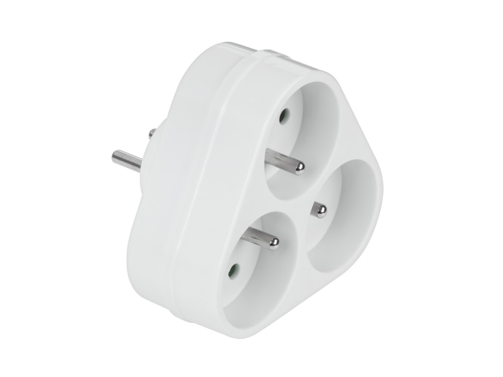 Razdjelnik je opremljen jednim ulaznim i trima izlaznim utičnicama, što omogućava raspodjelu jednog izvora napajanja na tri uređaja. Prilagođen je naponu AC 230-250 V i frekvenciji 50 Hz, što ga čini univerzalnim rješenjem za standardne električne instalacije.