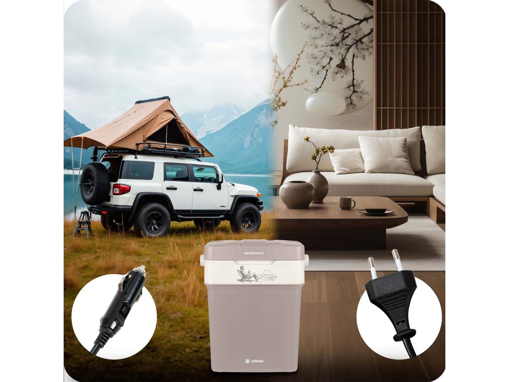 Hladnjak se može napajati iz mrežne utičnice od 220–240 V ~50/60 Hz ili iz automobilskog utikača od 12 V – odgovarajući priključni kablovi su uključeni.