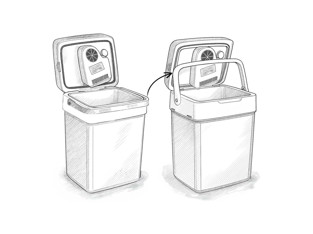 Hladnjak ima praktični sustav zaključavanja – kada je ručka postavljena vertikalno (u položaju za nošenje), poklopac ostaje zatvoren. Na taj se način neće slučajno otvoriti tijekom transporta.