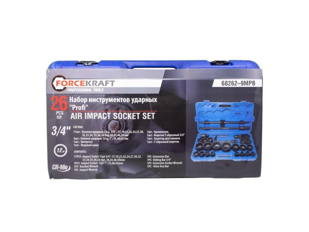 Set sadrži 26 elemenata. Svi nastavci i adapteri su smješteni u praktičnoj plastičnoj kutiji koja osigurava sigurnu transport bez mogućnosti samovoljno otvaranja.