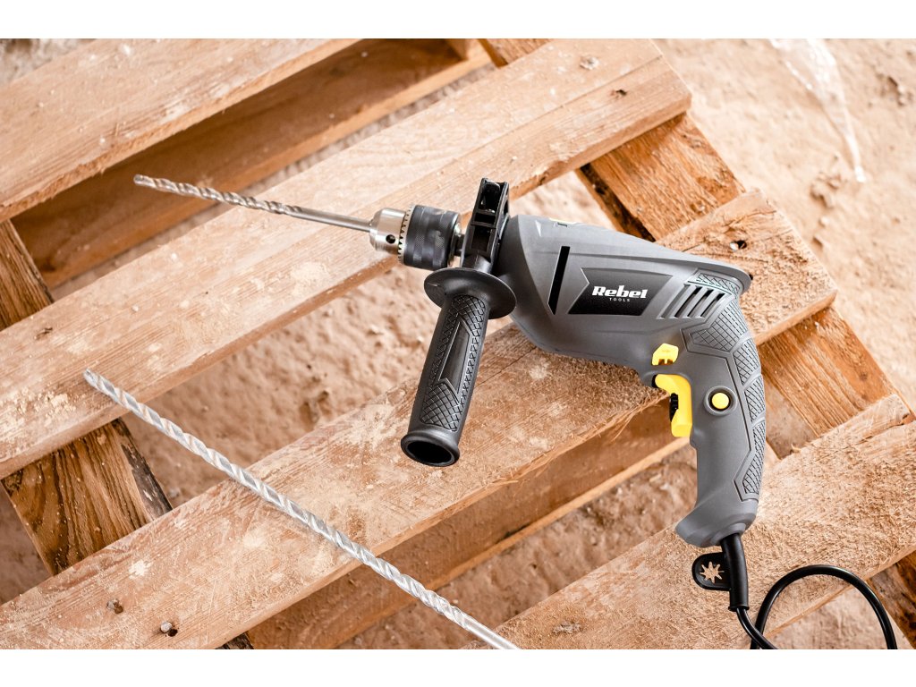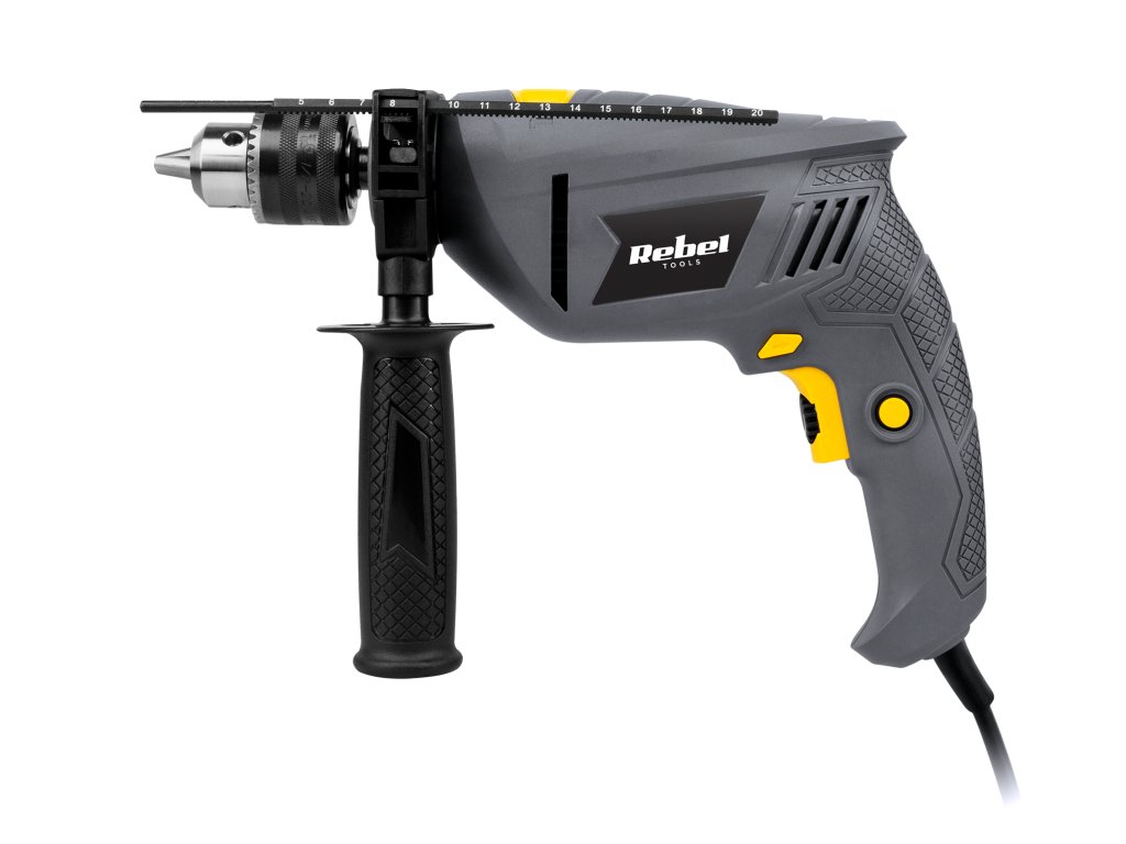 Ako volite sami obavljati radove renovacije u kući, svakako biste trebali nabaviti udarnu bušilicu Rebel Tools. Ovaj alat može raditi u dva režima: s udarcem ili bez udarca, što znači da možete jednostavno bušiti rupe ne samo u drvu i metalu, već i u cigli ili betonu. Bušilica radi sa snagom od 600 W i ima promjenjive brojeve okretaja s maksimalnom brzinom od 3.100 okr/min, što olakšava bušenje rupa u različitim materijalima s velikom preciznošću.Vrijedno je spomenuti graničnik dubine koji je dio seta i koji eliminira rizik od bušenja previše duboke ili previše plitke rupe. Prednosti stroja svakako uključuju njegovu malu težinu od samo 2 kg i ergonomsku gumiranu dršku koja osigurava udobnost pri radu. Funkcije: bušenje, udarno bušenje