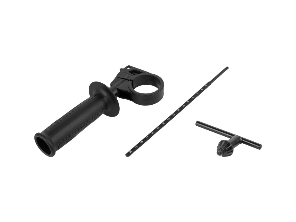U kompletu: ključ za steznu glavu, pomoćna drška, graničnik dubine, ugljene četkice (2x), upute za uporabu