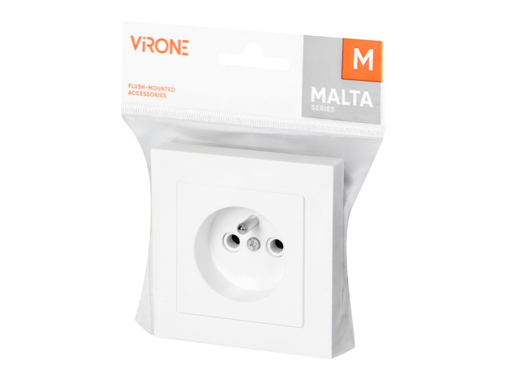Malta je jednostavna serija ugradnih sklopki i utičnica. Moderni mehanizam brzog spajanja sklopki (kabeli se spajaju izravno umetanjem u tijelo) omogućava sigurnu i pouzdanu instalaciju i uklanjanje kabela. Utičnice su opremljene tradicionalnim vijčanim spojevima. Unutarnji dizajn stezaljki jamči sigurno povezivanje kabela od 0,75 mm? do 2,5 mm?. Čvrsta i robusna montažna ploča te posebni montažni elementi omogućavaju stabilnu i sigurnu instalaciju u kutiji.Jednostavna utičnica francuskog tipa 2P+E. Namijenjena za ugradnu montažu. Treba se koristiti u unutarnjim prostorima (IP20).