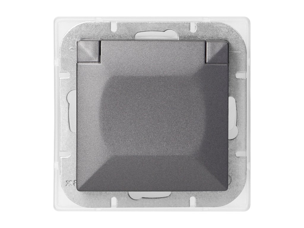 Ugradbena jednostruka utičnica 2P+E otporna na vremenske uvjete s poklopcem Pearl, 16A, 250V, PT-16PH, antracit
