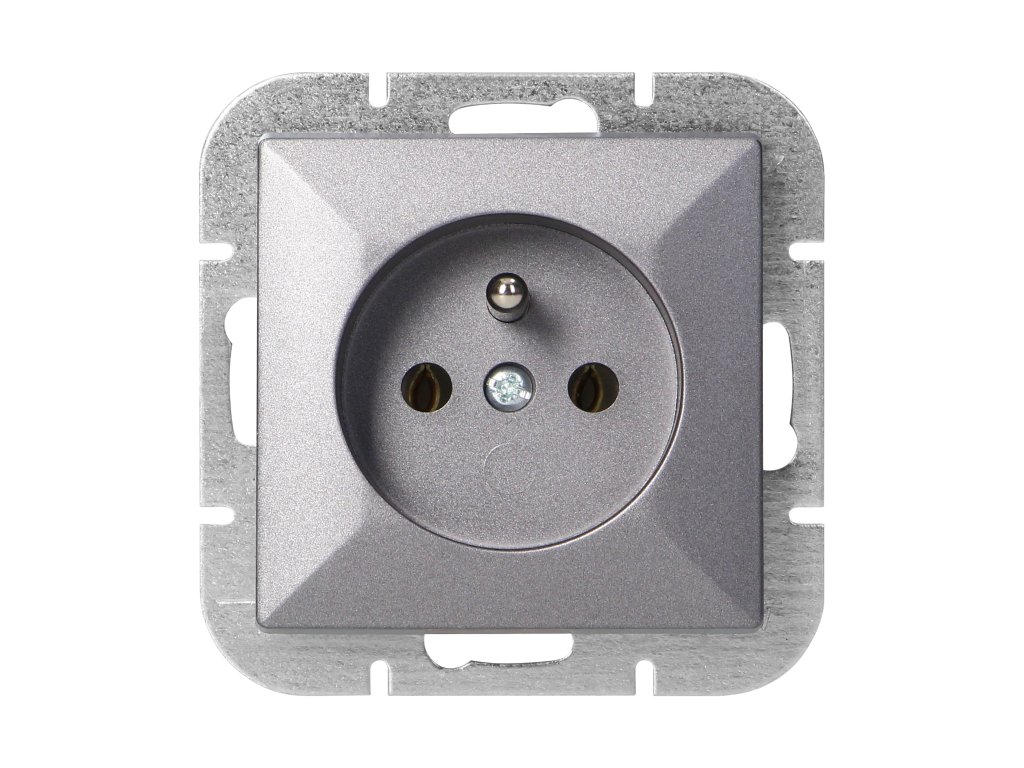 Modularna serija sa simetričnim sustavom okvirnih ploča (za 1-, 2-, 3-, 4-, 5-module) omogućava montažu proizvoda u horizontalnom i vertikalnom položaju. Moderni mehanizam za brzo spajanje (kabeli se spajaju guranjem izravno u tijelo) osigurava sigurnu i pouzdanu instalaciju i demontažu kabela. Utičnice su opremljene tradicionalnim vijčanim spojevima. Unutarnji dizajn stezaljki jamči sigurno povezivanje kabela od 0,75 mm? do 2,5 mm?. Jaka i čvrsta montažna ploča i visokokvalitetni samostalni elementi omogućuju stabilnu i sigurnu instalaciju u kutiji. Posebni opružni elementi olakšavaju pričvršćenje okvira na tijelo.Jednostavna utičnica tipa francuskog, 2P+E. Namijenjena za ugradnju u zid. Trebala bi se koristiti u unutarnjim prostorima (IP20).