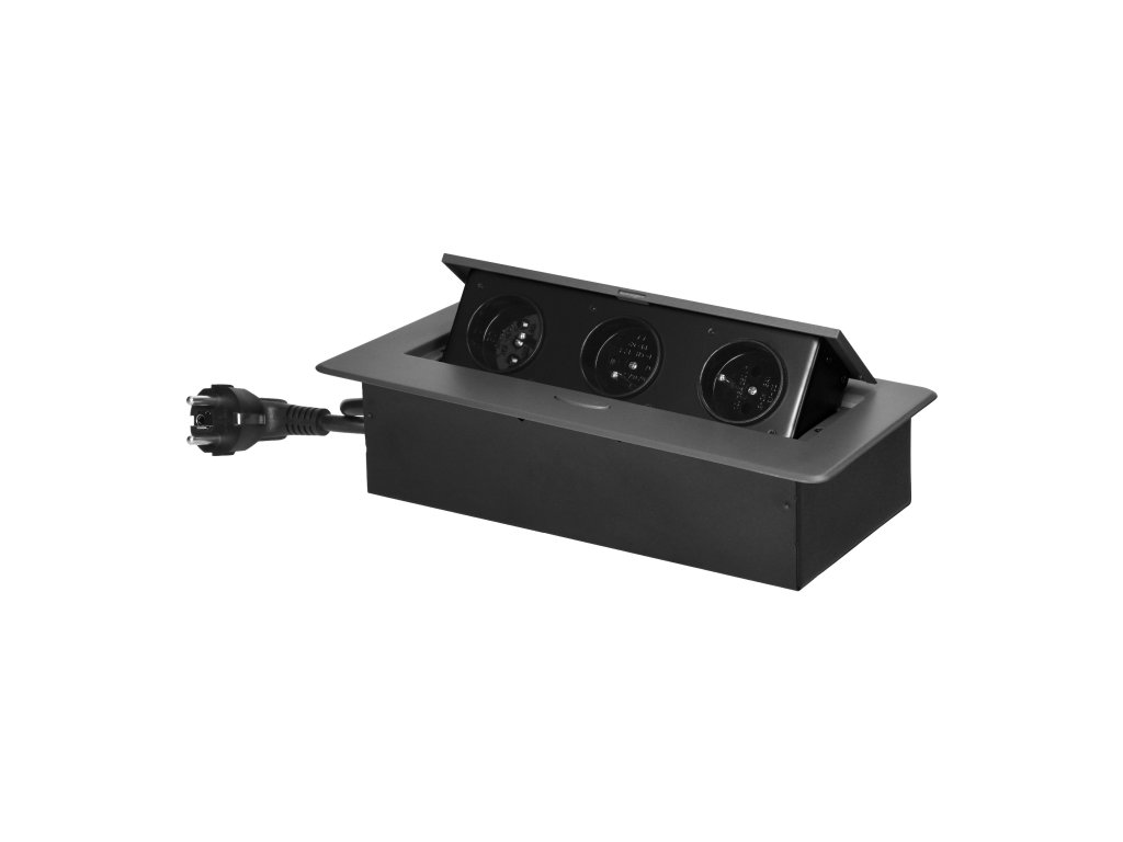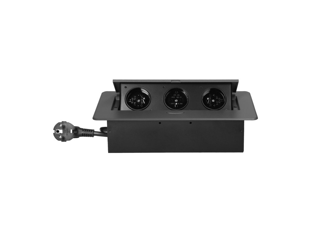 Ugradbena utičnica za namještaj 3x2P+E, 1,5m kabel, grafit