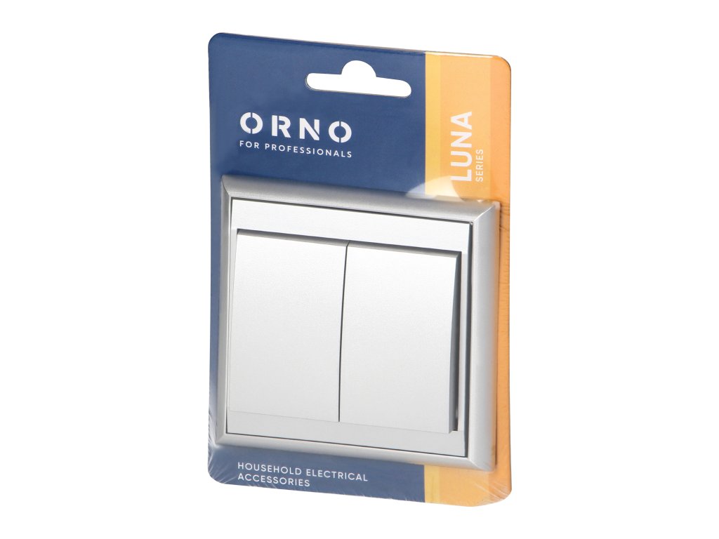 Ugradbeni dvostruki prekidač Luna, 10A, 250V, WP-2L, srebrni