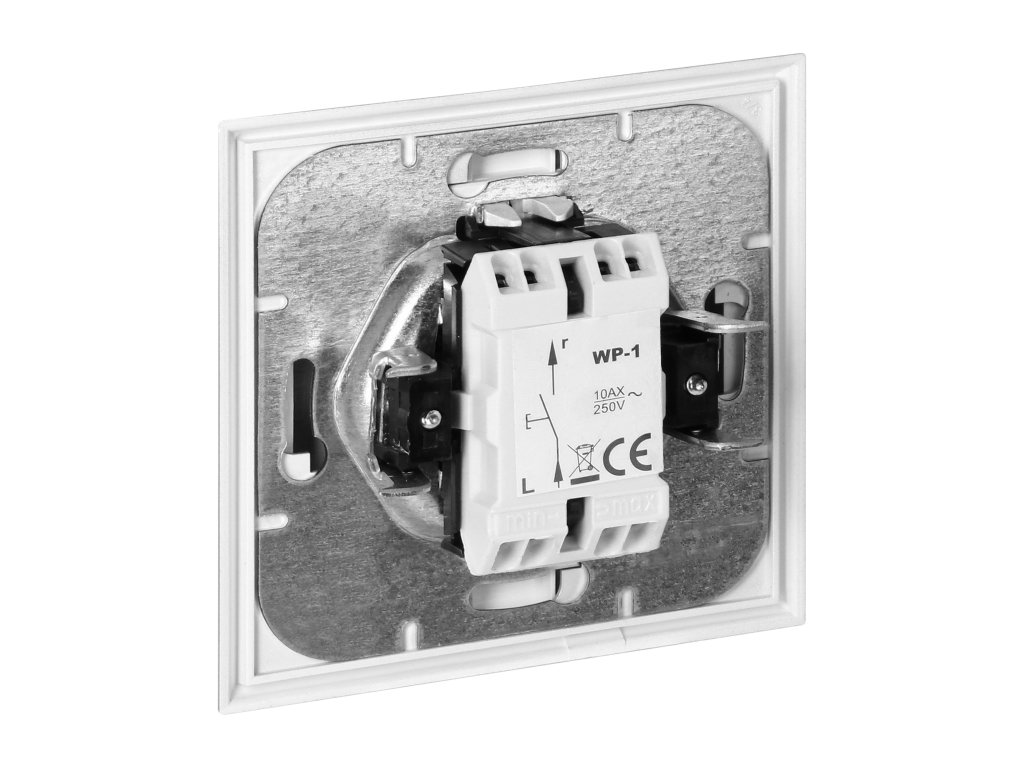 Jednopolni prekidač prilagođen je za ugradnju u zid. To je najjednostavniji osnovni prekidač koji radi na jednom krugu i kojem se, na primjer, može priključiti jedna lampa. Međutim, proizvod može nadzirati i druge uređaje u okruženju. Trebao bi se koristiti u unutrašnjosti (IP20).