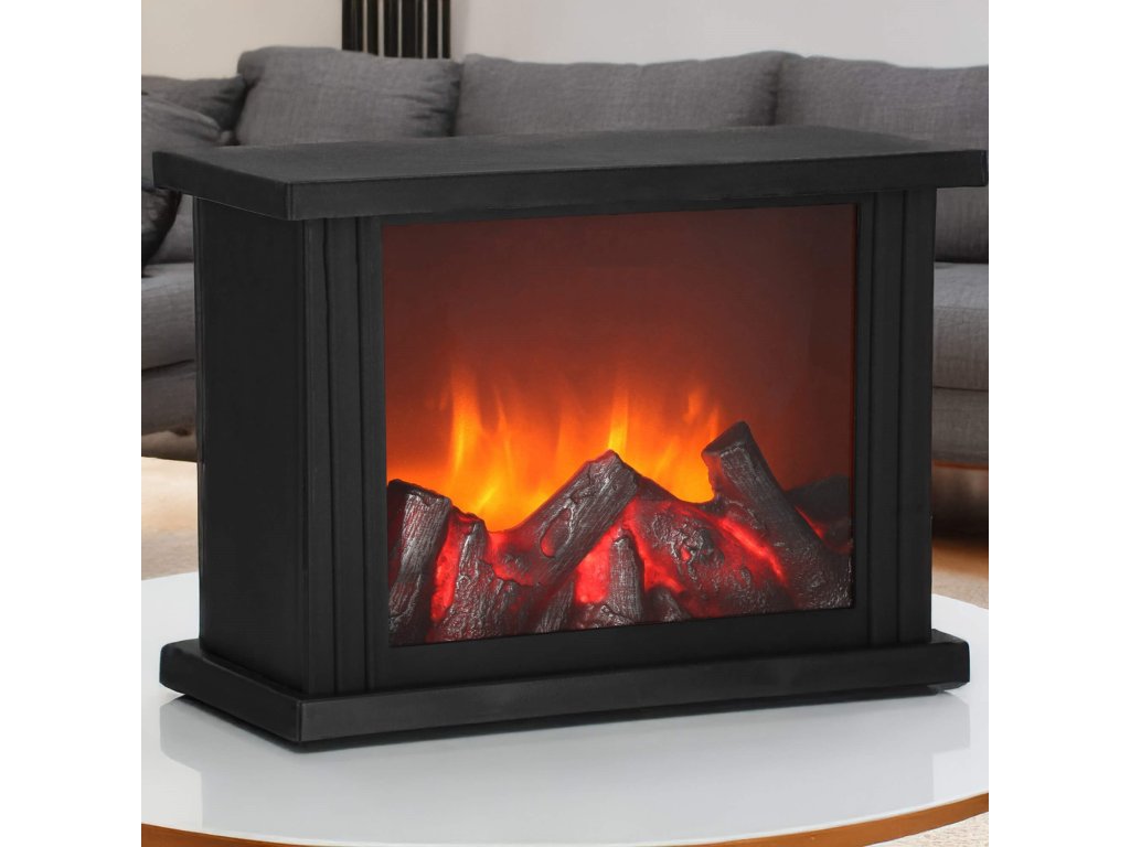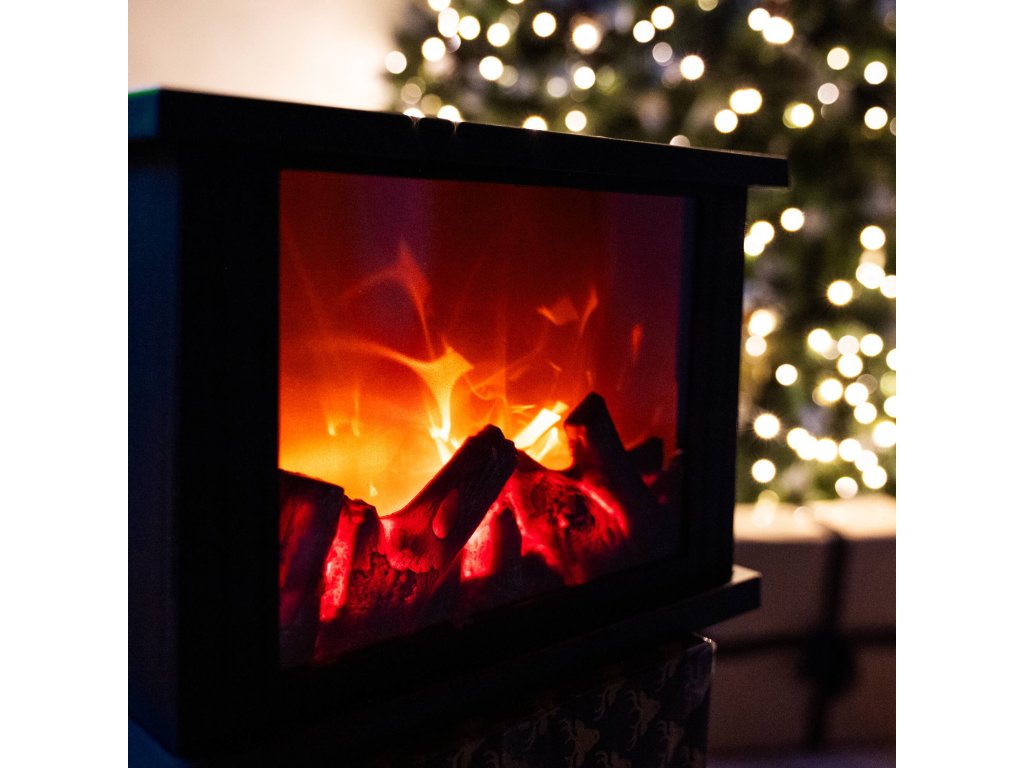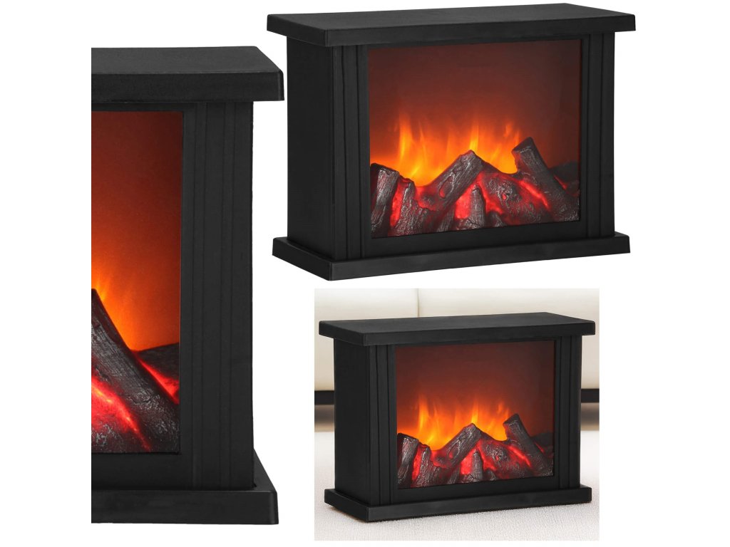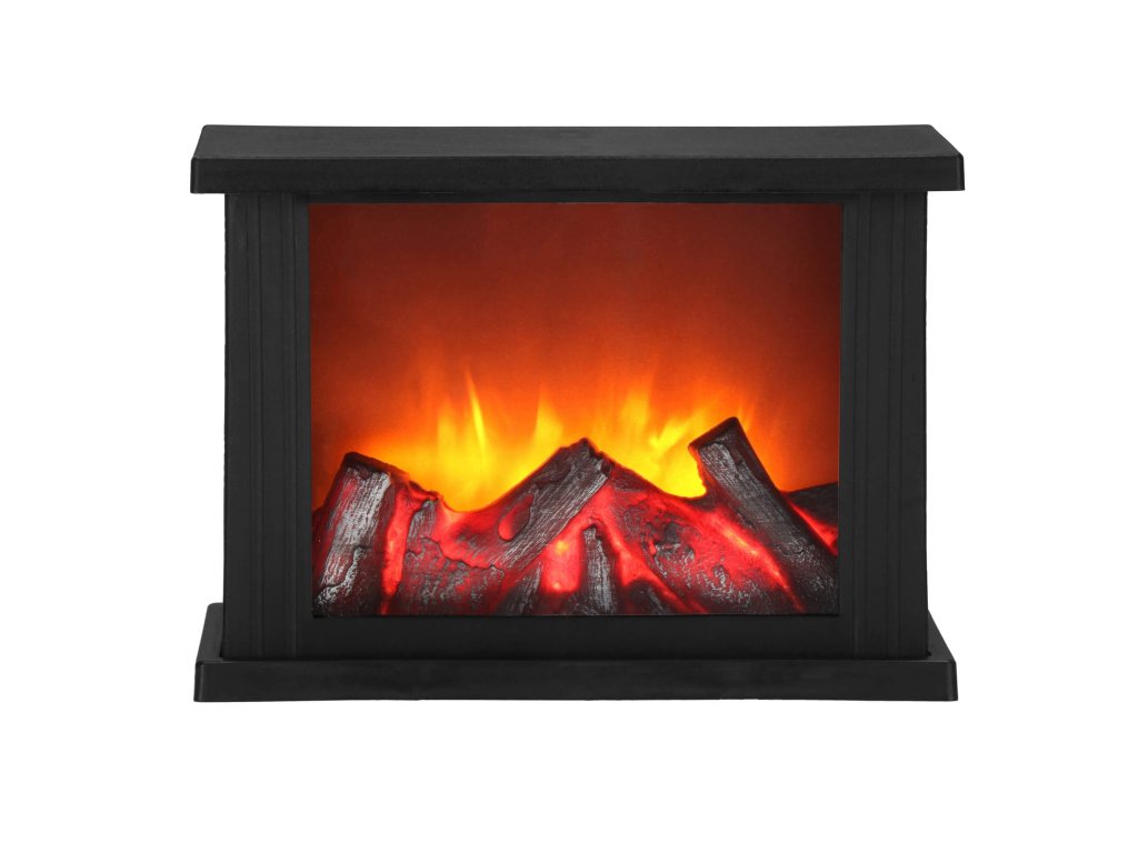 - Iza prozirnog stakla nalazi se imitacija gorućeg drva. Kada se svjetiljka uključi, stvara se efekt užarenog drva i pokretnih "plamenova" iznad njega.