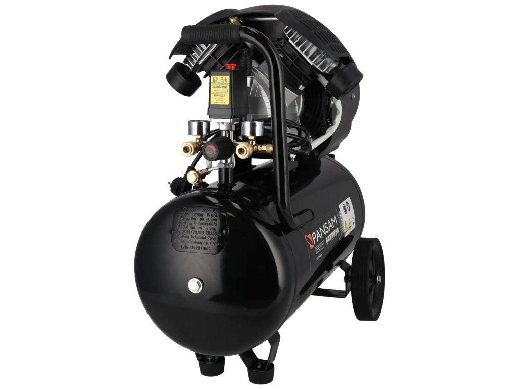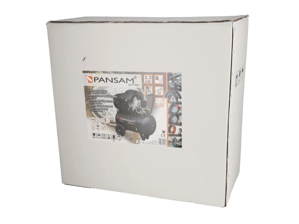 Uljni kompresor namijenjen je za komprimiranje atmosferskog zraka, a uz odgovarajuću opremu može se koristiti za puhanje, čišćenje, pranje, pumpanje guma, lakiranje itd. Kompresor ima motor snage 2 300 W i spremnik od 50 litara. Kompresor ima motor snage 2 300 W i spremnik od 50 litara. Kompresor ima motor snage 2 300 W i spremnik od 50 litara. Veliki transportni kotači omogućuju brzo i jednostavno premještanje kompresora. Uređaj je opremljen s dva manometra i dva priključka, što znatno povećava učinkovitost kompresora. Karakteristike uređaja PANSAM Compre sora A077060: