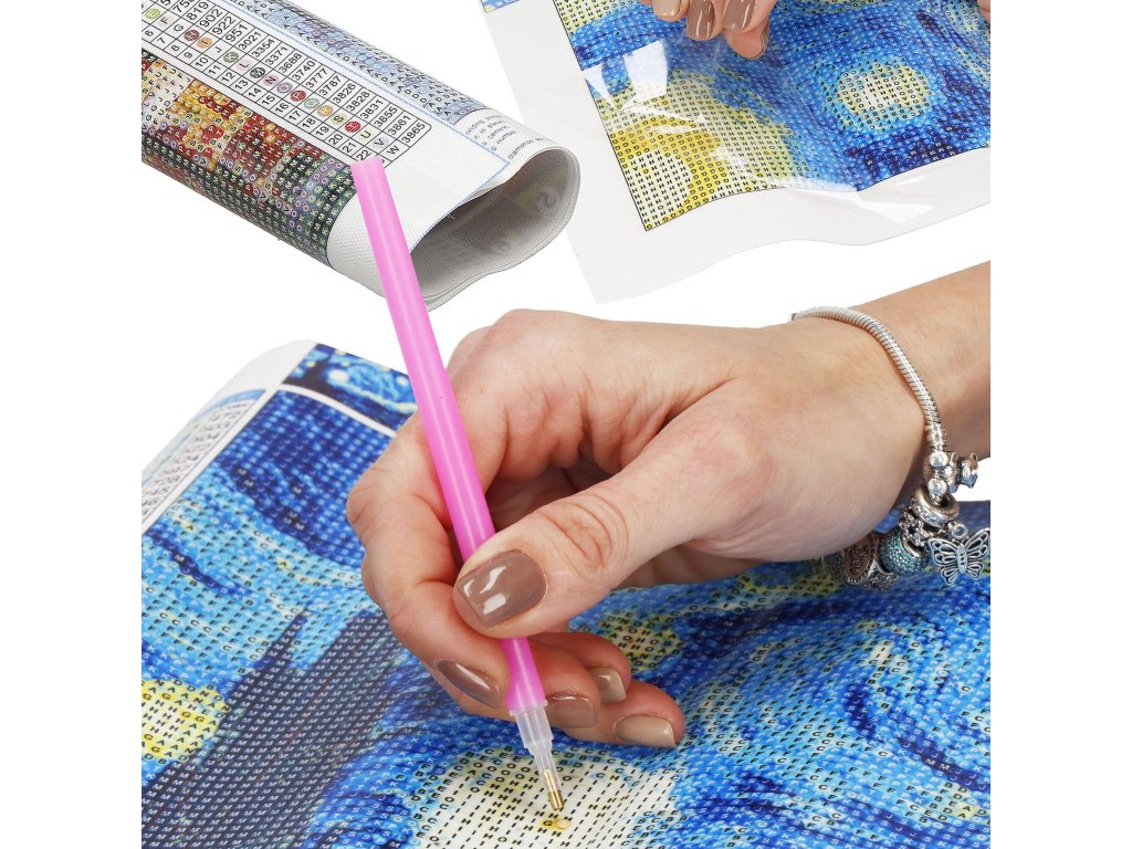 1x ružičasti aplikator (duljina 12,5 cm, promjer 0,7 cm) za hvatanje i lijepljenje dijamanata