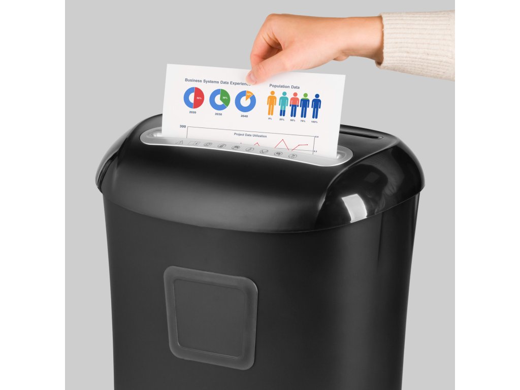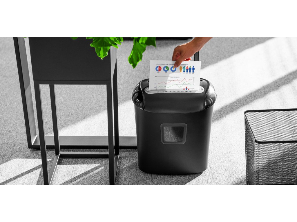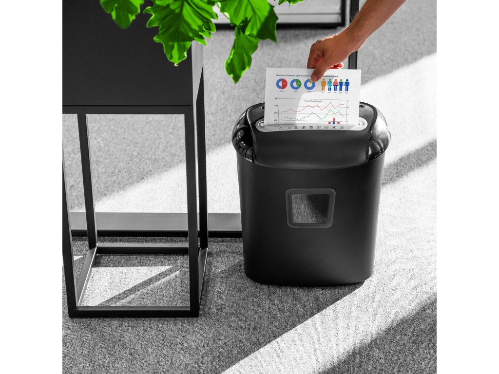 Uništavač dokumenata Rebel omogućuje uništavanje 10 listova papira odjednom, što vam omogućuje brzo rješavanje velikih količina nepotrebnih dokumenata. Posebno dizajniran mehanizam dodatno reže dokumente na mikročestice dimenzija 5x16 mm, tako da možete biti sigurni da oštećeni podaci neće biti ponovno kreirani.
