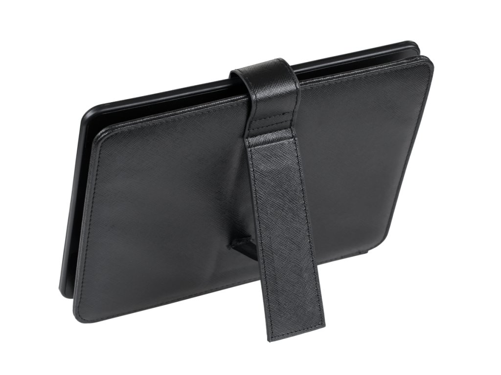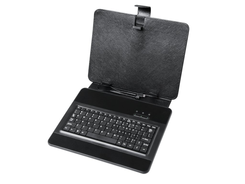Univerzalna torbica za tablete s tipkovnicom marke Quer. Torbica je čvrsta, učinkovito štiti tablet od oštećenja. Torbica ima stalak koji omogućuje postavljanje uređaja u položaj koji olakšava pisanje, pregledavanje interneta itd. Tipkovnica je povezana pomoću micro USB kabela. Signalizacija rada diodama. Veličina 9,7 inča Dimenzije 25cm x 19cm Pričvršćenja smještena u gornjem i donjem dijelu torbice. Raspon pričvršćenja 16cm - 18,5cm visine. Torbica bez ograničenja sa strane. Kompatibilna je s uređajima s odgovarajućim USB HOST priključkomUniverzalna torbica za tablete s tipkovnicom marke Quer.