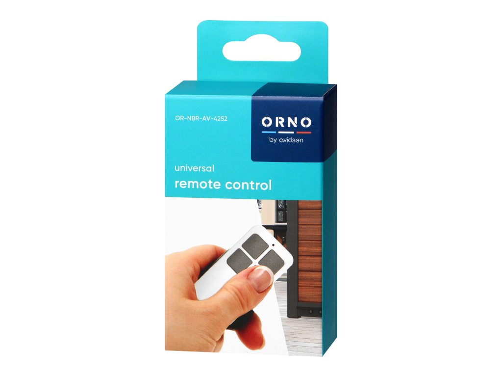 Univerzalni daljinski upravljač za pogon vrata ORNO od AVIDSEN-a. Univerzalni daljinski upravljač za pogon vrata ORNO od AVIDSEN-a je praktično i kompaktno rješenje koje omogućuje dodavanje dodatnog daljinskog upravljača vratima ili garažnim vratima (domet do 70 m). Jednostavno postavljanje i upotreba, idealno kao zamjena za originalni daljinski upravljač. Pogledajte upute za uporabu za popis podržanih uređaja.Maksimalni broj podržanih uređaja: 4