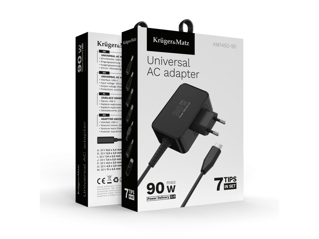 Univerzalni punjač Kruger&Matz 90W s funkcijom Power Delivery 7 nastavaka