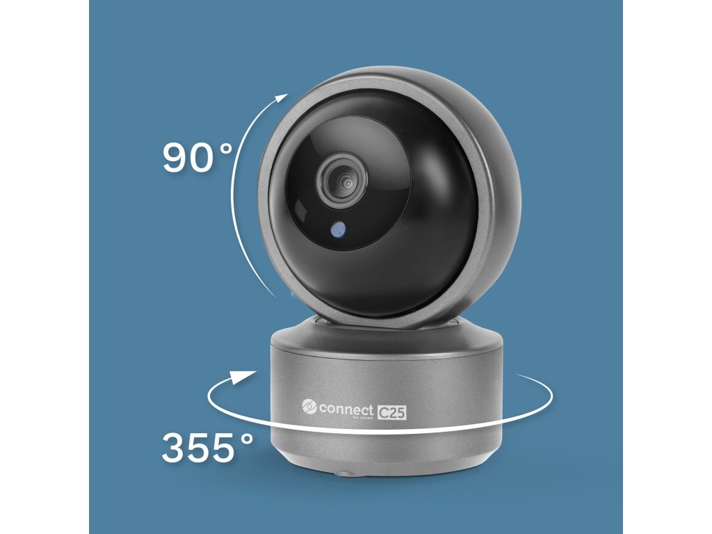 Rotacijska kamera WiFi Connect C25 ima široko vidno polje. U namjenskoj aplikaciji možete upravljati uređajem horizontalno pod kutom od 355° i vertikalno pod kutom od 90°. Takva fleksibilnost omogućuje gotovo potpuno pokrivanje nadziranog područja, čime se osigurava svestrana zaštita i nadzor.