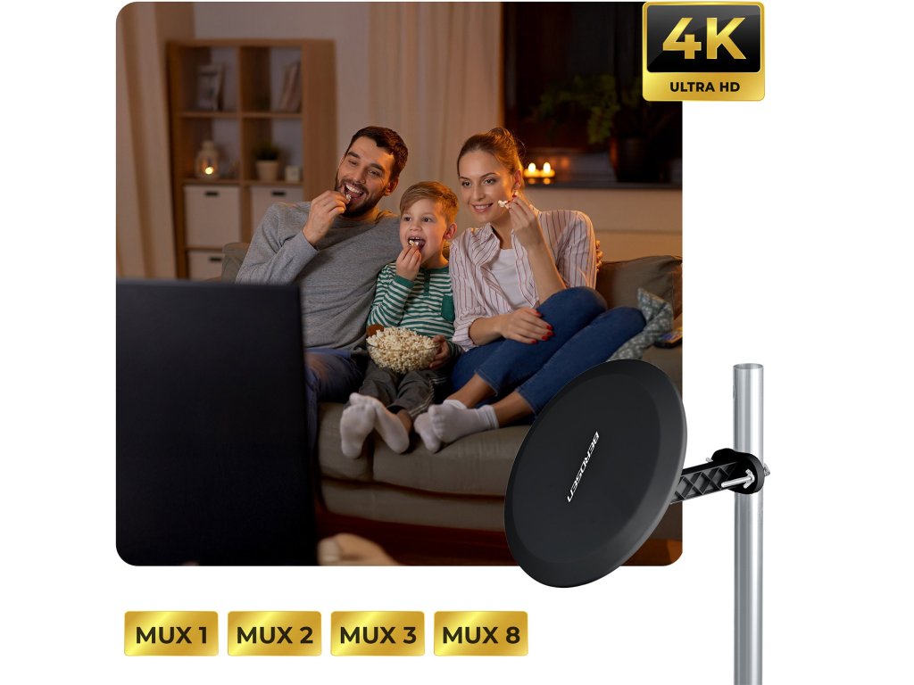 - Unutarnja-vanjska aktivna antena za prijem zemaljske televizije u kvaliteti 4K.
