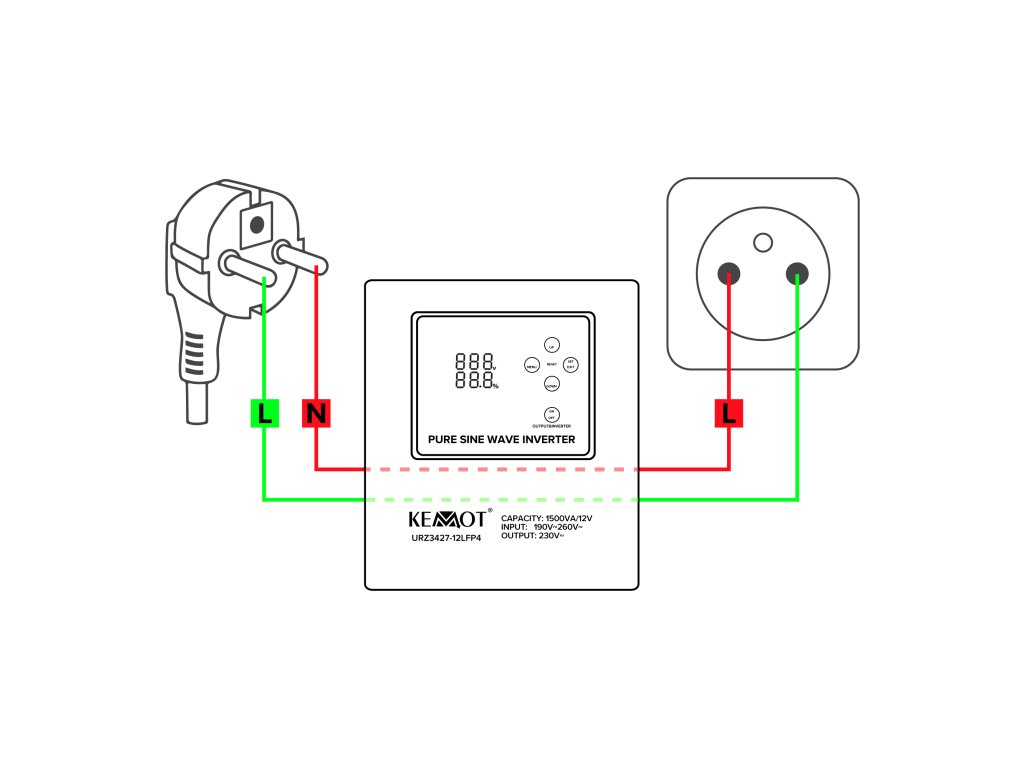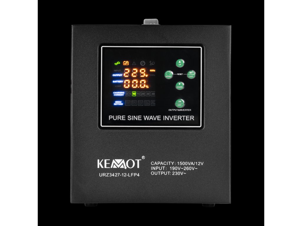 UPS KEMOT PROsinus-1500-LFP4 pretvarač s čistim sinusnim valom i funkcijom punjenja 12V 230V 1500VA/1050W