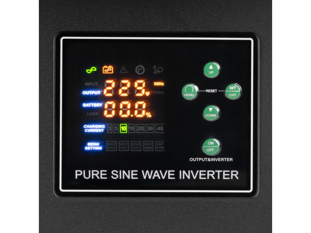 Način vanjskog napajanja s funkcijom punjenja, pretvara istosmjerni napon 12V DC koji dolazi iz vanjske baterije u izmjenični napon 230V AC te dopunjava vanjsku bateriju. Način punjača dopunjava vanjsku bateriju. Način invertera, pretvara istosmjerni napon 12V DC iz baterije u izmjenični napon 230V AC.