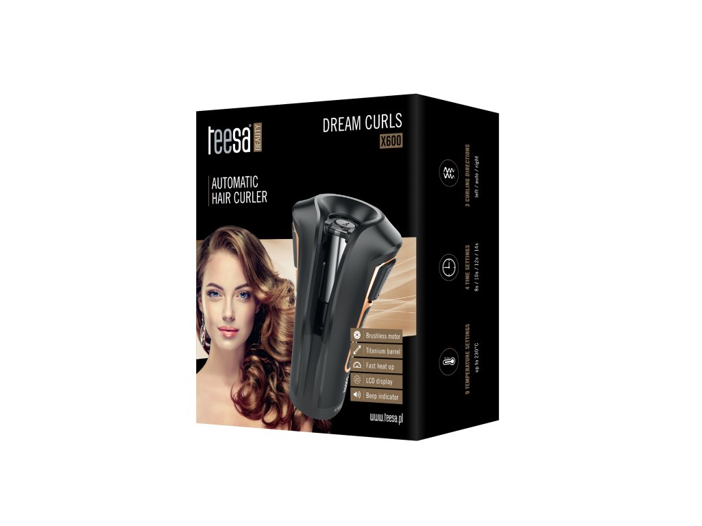 Trebate promjenu u životu Počnite s novom frizurom! S automatskim uvijačem Teesa Dream Curls X600 bez napora ćete stvoriti savršene i ujednačene kovrče. Uređaj je, između ostalog, opremljen titanskim valjkom koji glatko klizi kroz kosu i brzo je uvija za prekrasan sjaj.
