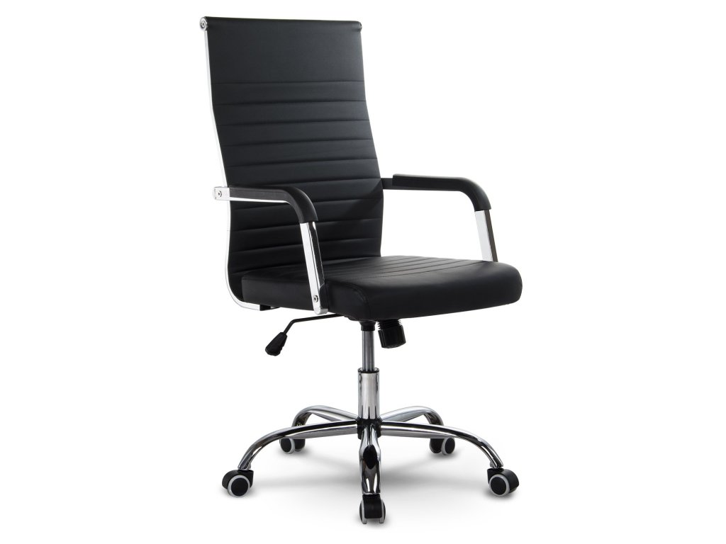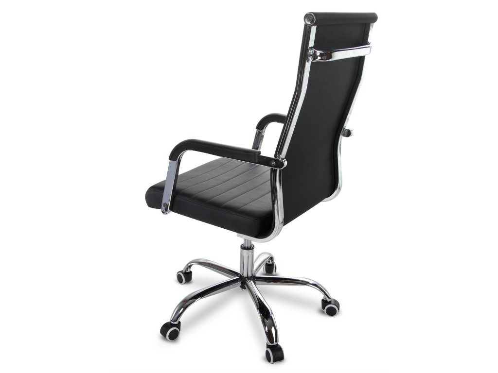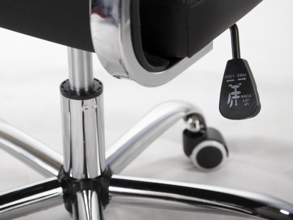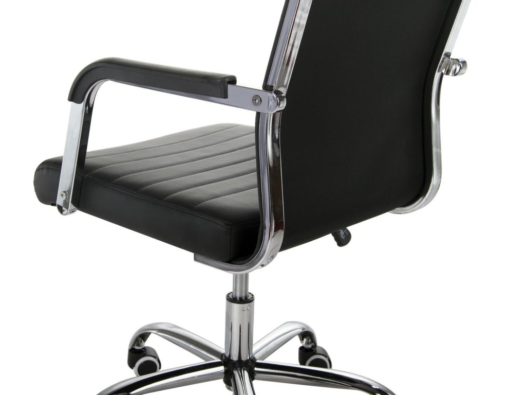 Uredska stolica opremljena je kromiranim naslonima za ruke i mekim sjedalom, presvučenim ugodnom eko kožom na dodir.