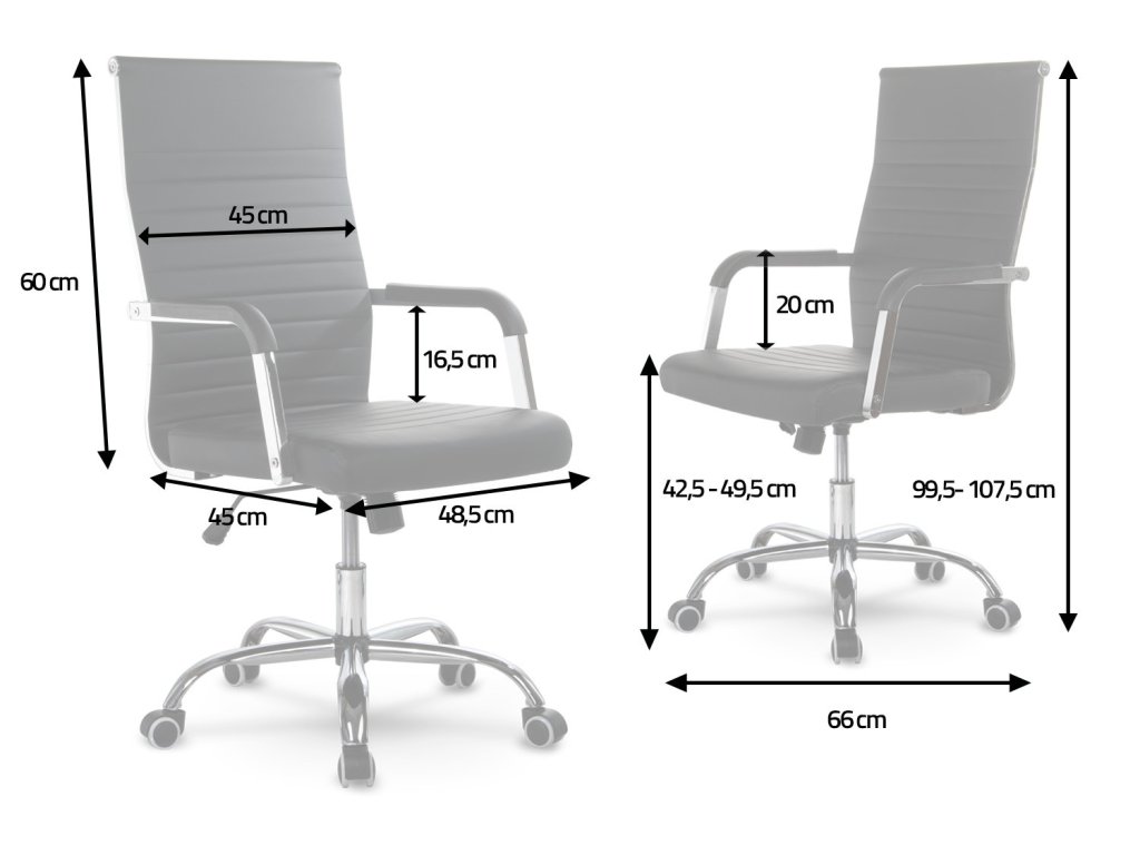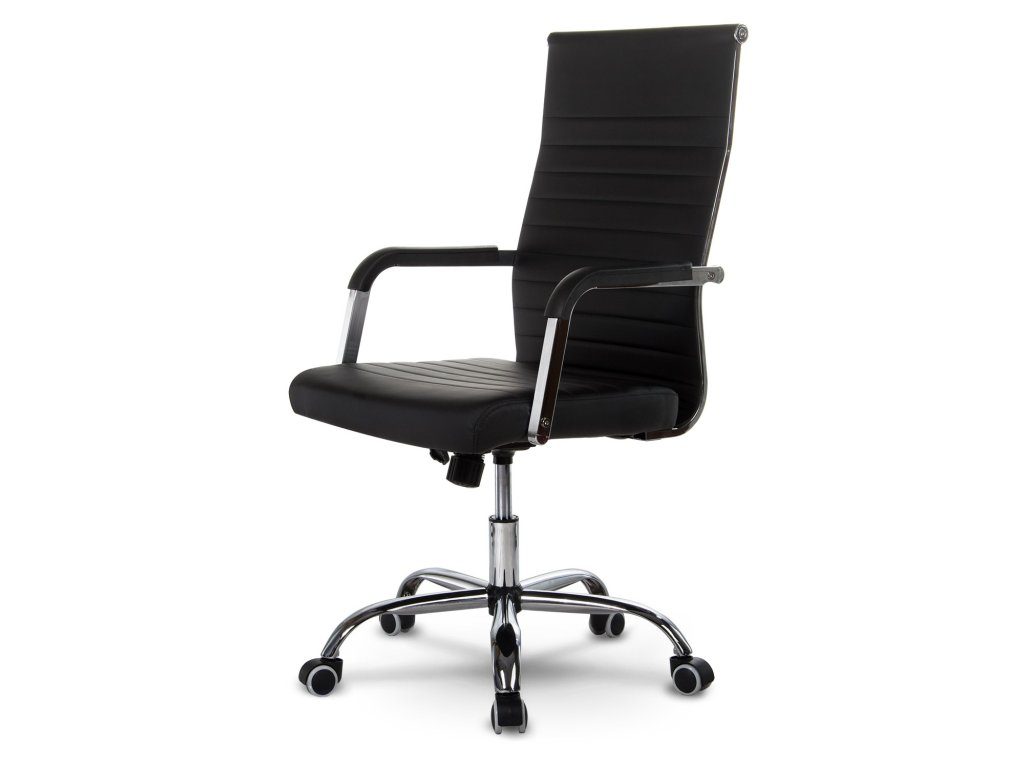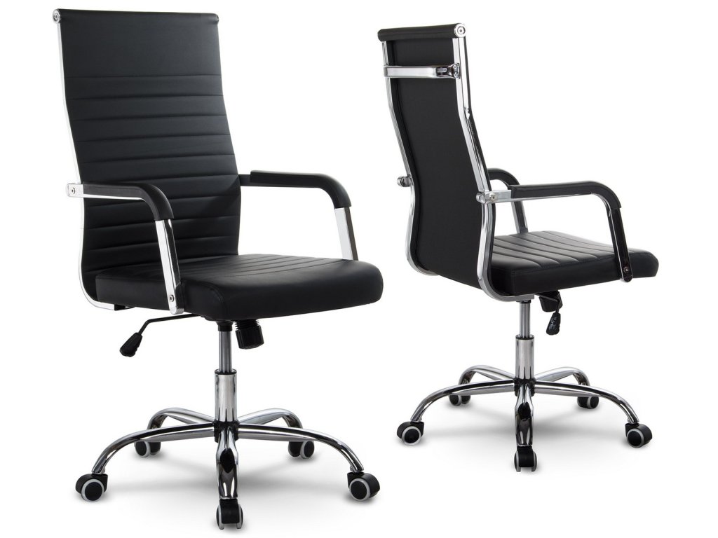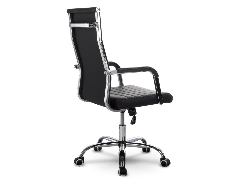 Uredska stolica opremljena je kromiranim naslonima za ruke i mekim sjedalom, presvučenim ugodnom eko kožom na dodir.
