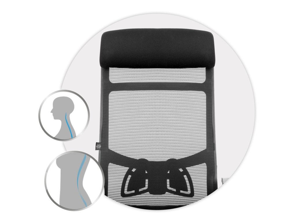 Oblikovani lumbalni dio pomaže održati ergonomski i siguran položaj tijela. Prilagođava se obliku vašeg tijela i osigurava udobnost sjedenja.