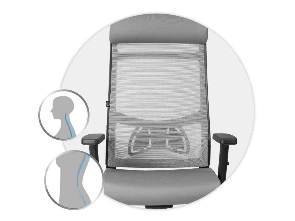 Oblikovani lumbalni dio pomaže u održavanju ergonomskog i sigurnog držanja tijela. Prilagođava se obliku vašeg tijela i osigurava udobnost pri sjedenju.