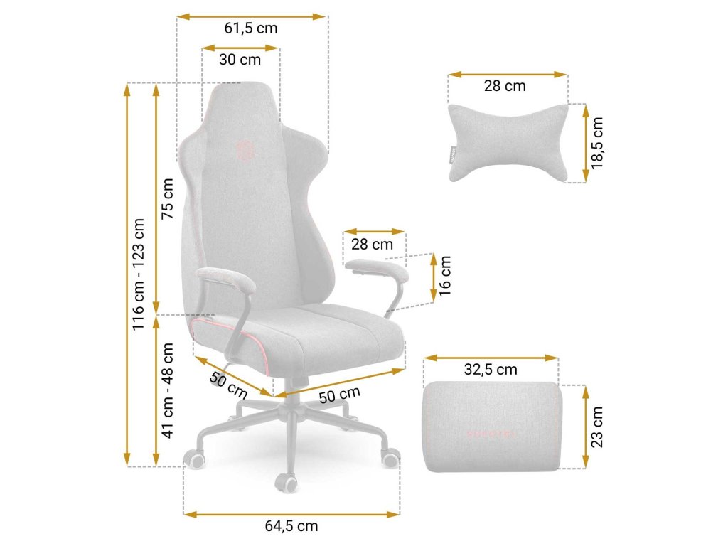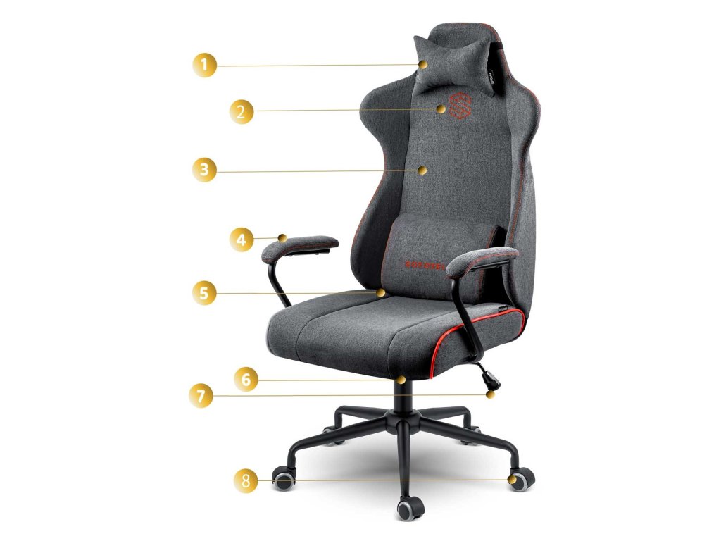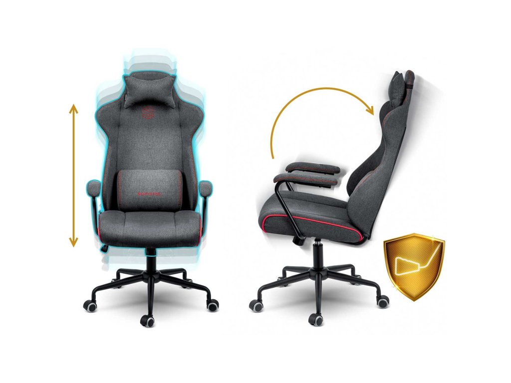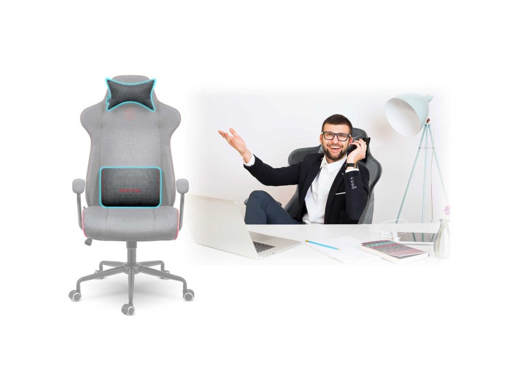 Oblikovani lumbalni jastuk i jastuk za glavu pomažu održati ergonomsko i sigurno držanje tijela. Jastuci se prilagođavaju obliku vašeg tijela i osiguravaju udobno sjedenje.